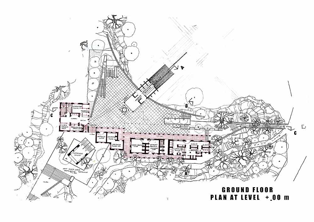 Comprehensive Design Project (proposed Gem Musaeum And Preparation Centre For Ratnapura, Sri Lanka) Part 2 Project 2003 Nalaka Krishantha University of Moratuwa | Sri Lanka For time immemorial Sri Lanka has had a sparkling reputation for highly treasured gems, providing home to 40 of its varieties out of 85 varieties available in the whole world. These precious stones perfected in the laboratory of nature lay hidden for countless ages, their luster undimmed, their value unrecognized Solomon, the Biblical king, epitome of human wisdom has gems brought from Sri Lanka to woo the heart and win the hand of queen Sheba. There exists many a story of jewels from Serendib (as Sri Lanka was known in the past) traveling into kingdoms of Cathay and Arabian Gulf. Some of the gems found there have become famous under special names like ‘Sinhalite’, ‘Ceylonite’, etc.Ratnapura as the name implies is nature’s storehouse of gems of Ratnadeepa; Sri Lanka. Blue Sapphires, Cat’s Eyes, Alexandrite, Rubies, Star Stones found embedded in layer of gravel and sand, in river beds, marshes, and fields or accumulated at the foot of hills of Ratnapura for unknown ages. The proposed Gem Museum & Preparation Centre thus stemmed out with the intention of instilling the glorious un-ended story of gems of Sri Lanka that is woven over thousands of years with awe, mystery, power and glamour.Gem mining is a journey into the deepest layers of mother earth. It is fearful, mysterious, adventurous, risky, and could even cost one’s life. Yet, it could also have a glorious end, making one rich, powerful and glamorously wealthy. The site is at the highest elevation of Ratnapura Old Town, about 20 meters from the main road level. It is irregular in shape and is bounded by two major roads – the Town Hall Avenue on the Western side and the Fort Lane on the Northern End.The building form is the ultimate response to the glamour and the aura of ‘gem’ culture, the social setting and the physical context.The Old Dutch Fort stands majestically in the heart of the Ratnapura Old Town, where the gem activities are mainly concentrated. The small hillock calls for a “rise-up”; a sense of verticality with a flattened peak and a sudden level drop. Gem dealing activities, responding to its present rather informal nature, are housed in the open terraces facing the Debachchiya street and the “mango tree” where gem dealing is actually taking place. Shaping of the form; the details and elements are influenced by the glamour of gems itself, its preciousness, the associated myths and mysteries. Massive, curved roof structure is a subtle reflection of the crystalline structure of Sri Lanka’s most valuable gem specie, “Corundum”. Curved trusses of the roof are a reflection of the sparkling lines of gems, glittering at night. Existing rampart is transformed into a massive wall to heighten the spatial experience, while responding to the corner of the street.Silver-coloured gutting-out box is the reflection of a gem-pit. The gem museum at underground is a huge dome, built by a concrete structure. A lift goes up and down through the center of the dome; once it moves down, the iron lid of the dome is activated with a thundering sound, to close it down to evoke mysterious, awesome feelings.The tunnel inside the rampart is linked with the dome of the museum. Its interior is massive and magnificent with dummies wearing gem and jewellery. At a distance the gem museum and preparation centre is seen as different leveled terraces, with old Dutch building under the massive roof structure; heightening the identity and inculcating the pride of the world-renowned gem-city; Ratnapura of the gem-country; Ratnadeepa (Sri Lanka). This project received the highest marks, which is above 75% at the Final Examination for MSc. Architecture.The project was adjudged as the best solution for social, cultural, environmental and technological context of Sri Lanka. This proposal is strengthened by very strong concepts which bond the roots of myths, mysteries, and fantasy of gems in Sri Lanka. However, the author was able to detail the design to suit the concept, context, and function as well. It has resolved all issues concerned in a Museum for gems, one of the most lucrative export items. The project was adjudged very successful in its effort in globalization of Sri Lankan gem industry.Further which to inform that the author frequently consulted me when preparing the said design scheme for MSc. Architecture.I have no hesitation to recommend this scheme for RIBA Presidents Medals – 2003.