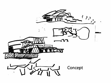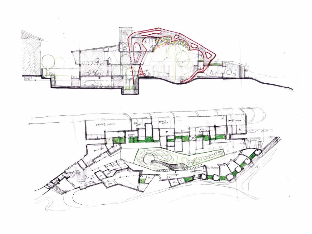 Prototype Design Centre for childrens toys and Play school, Mutwal Part 2 Project 2010 Chiranthi Warusuwitharana City School of Architecture | Sri Lanka The project is a wooden toy prototype manufacturing and development facility for a leading toy manufacturing company based in Sri Lanka.The biggest challenge the industry faces is that it is entirely dependent on global markets and foreign buyers. The current prevailing world economic crisis has heavily reduced the profits of the company, forcing them to diversify their business. Tapping in to small scale, local niche markets, and making their product more appealing to the local consumer would provide them the stability, ensuring their survival.Developing the design aspects of the product would have a huge impact on attracting new groups of local consumers. The problem of the wooden toy being as not as competitive as the cheap imported plastic toy could be overcome by creating a “wooden toy culture” that relates to urban life in Mutwal. The project acts as a catalyst to activate existing dead spaces in the area. The project consists of two user components. One being the company’s interest in creating a prototype design facility,while the “place” acts as a vessel to market and popularize the wooden toys. The other, being the public component, which would benefit from the educational programme implemented through the activities of the “play school”. The play school is an interpretation of CSR (corporate social responsibility) and has been identified as part of the company’s day to day functions. The “play hub” project becomes a place where the company directly interacts with the public with the intention of creating a stronger bond with the consumer. It is also an opportunity for the company to create a new public image for themselves. The co- existence between the “company” and the “public” is manifested into the activity of the main space- “Toy Library”. It is the space which celebrates the act of play, childhood and animates both the young and the old,created in the belief that “toys are the greatest inspiration". People never really grow up,they just become bigger adult bodies and they really want to continue to play. Project attempts to reinterpret and expand the function of a Toy factory in a developing country such as Sri Lanka, of which the present function is predominantly to produce toys for export.The student has attempted to provide architectural meaning to both the ‘process’ and the ‘image’ of programme. As for the process, the student has investigated ways of architecturally interpreting the term ‘Learn while you play’. Here the learning is for both the children and adults (toy designers and manufacturers). Integration / separation of play areas for children and work areas for the toy designers throughout the internal spatial progression provides meaning to the process. A ‘biomorphic’ (a dinosaur skeleton) structure that appears to be flowing out of the solid central area creates an emphatic image to both children and adults. Strength of this project is that it has been able to provide for two different activities: one a technically complex toy production and design area and the other a socially demanding play area for children of the Mutuwal community. Both these areas are juxtaposed in the architectural form to create a sense of joy, which is the essence of playing with toys. Tutor(s) Janaka Dharmasena Waruna Gomis