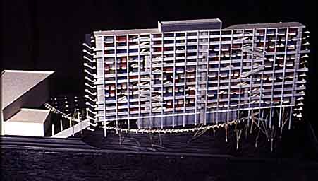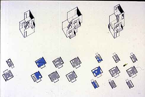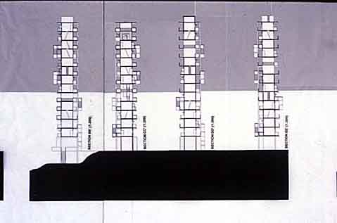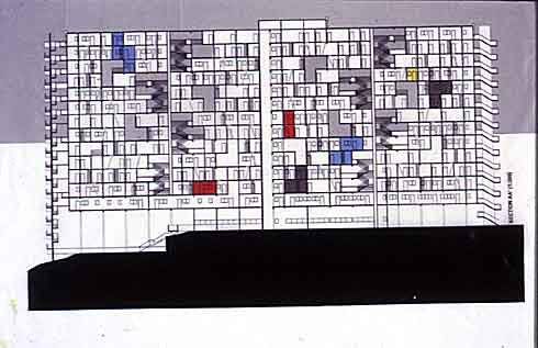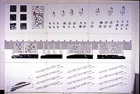 An ideal hostel in my mind is more than accomodation that provides comfortable living conditions for young university students. It should also be a part of the tertiary educational system where the youths learn the way of self-organizaton. With the examples of the Kowloon Walled City and the illegal structures in the old districts of Hong Kong, we sense that they are more lively living environments as compared to the concrete jungle of the modern residential towers in Hong Kong. What we have lost in the way of modern city development reminds us that a lively system is one in which each individual in the system is allowed a little more freedom to explore different possibilities; then everyone will benefit in terms of co-evolution. The process itself encourages self-organization. The hostel I designed is this system. There is no fixed living layout and living types. Varied living options and combinations are achieved by composing predetermined volumetric space units. The space occupied by each student is the controlled factor, but the variety of spaces shared allows the freedom of constant changing and renewing. The living relationship is not limited to the neighbour-bed type, but extends to the upper and lower decks by the means of ladders which act as space connectors and dividers. All these happen in a linear rectangular box which exploits the elegance of pure geometry.