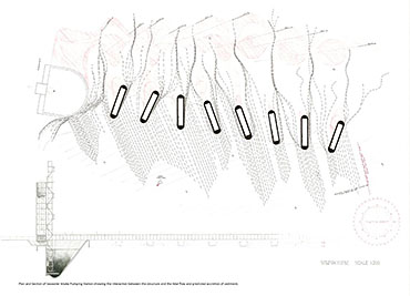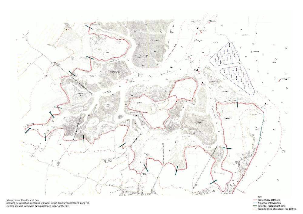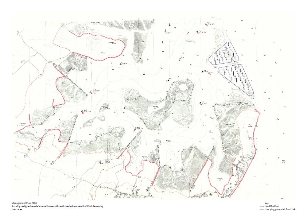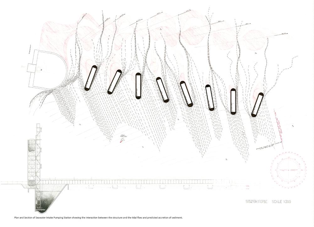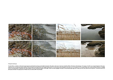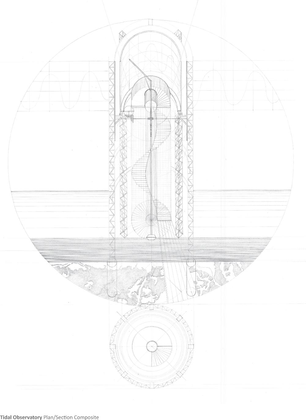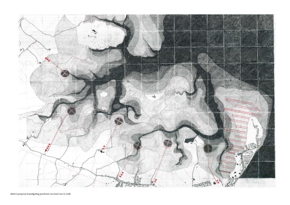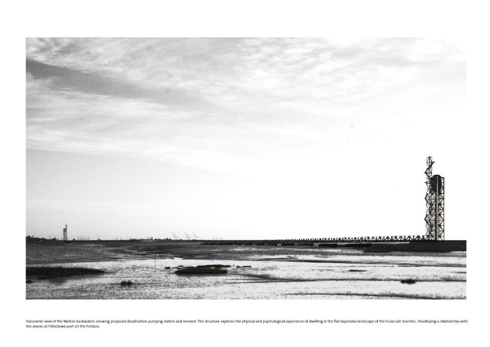 New Nature : A Shifting Paradigm Part 2 Project 2011 Lewis Benmore University of Dundee | UK The principles established in this research are expressed through a landscape management strategy, a series of structures that form a seawater desalination plant and a tidal observatory located in the tidal backwaters north of Walton-on-Naze. The coastal region is a fragile and restless landscape, constantly in flux. For centuries man has adapted to this shifting landscape, however recently attempts have been made to control the natural process of erosion and preserve the landscape. It is only recently, in geological terms, that mankind has become disengaged with the land through the development of the built environment.The desalination plant aims to re-establish a community within the fragile ecology that exists on the site, shaping how a culture evolves and challenge the disengagement between man and nature that exists. The physical manifestation of the plant will engage with the geomorphological processes that characterize the landscape, facilitating the ‘managed retreat’ approach. Challenging the threat of sea level rise and tidal surge, the plant turns seawater into a manageable resource, creating a more symbiotic relationship between man, nature and the spiritual roots of place and time. By engaging with the landscape the desalination plant will attempt to render visible natural processes, challenging the romantic idea of the ‘natural landscape’.As a monument for the 1953 floods the tidal observatory is a device for recording the traces of the tide. Similar to the Munro Gauge, the tidal observatory produces sea level elevations, recording coastal processes; tidal response, storm surge behavior and the rise in sea level. The ebb and flow of the tide draws lines, the rhythmic forces are recorded becoming a map that periodically highlights the instability of nature. Shifting away from mono-functional infrastructure, the proposed landscape management strategy merges existing landscapes with emergent infrastructures in order to catalyze new ecologies, economies and most significantly, a new social infrastructure. It is widely acknowledged that global climate change is inevitable. In order for man to adapt to climate change and reengage with nature, it is important that our perception returns to a rejection of dualism, a view that perceives nature as a living whole, recognizing mans position within the ecology as interdependent. Tutor(s) Helen O'Connor Fergus Purdie