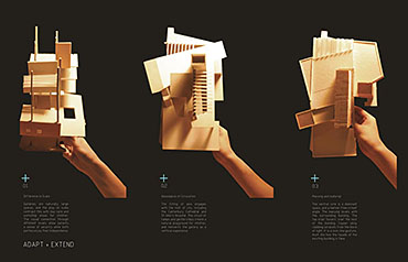 Adapt + Extend: Canterbury Museum of Archeology Part 1 Project 2015 Edwin Yu University of Kent | UK To house the growing display of the Canterbury Archaeology Trust, a museum is proposed in Northgate, behind the high street. The main challenge was to take an existing building with a fake Tudor facade in a conservation area and to make an adaptation that suits future needs, especially the priceless Bronze Age Boat.The architecture was driven by making a great community and family day-out. The site itself was a low income area of mixed culture and race. The journey through the museum is an exploration, beginning from the narrow existing stairs; children run up and down a series of gentle ramps and steps, and experience the constant change in scale.Instead of following the language of the Tudor street or other "High" architecture, the design uses ornamentation (perforated copper cladding) drawn from Canterbury Cathedral, to establish a connection with the community’s collective memory. Canterbury was involved in England's Arts and Crafts movement in the nineteenth century. Much like Pugin, this project reinterprets Gothic architecture and recreates the wonder and delight of our cathedrals. Tutor(s) Ashvin de Vos