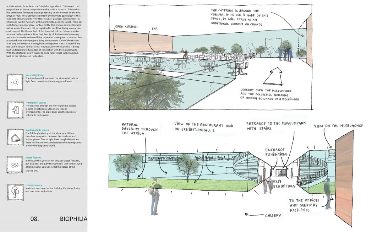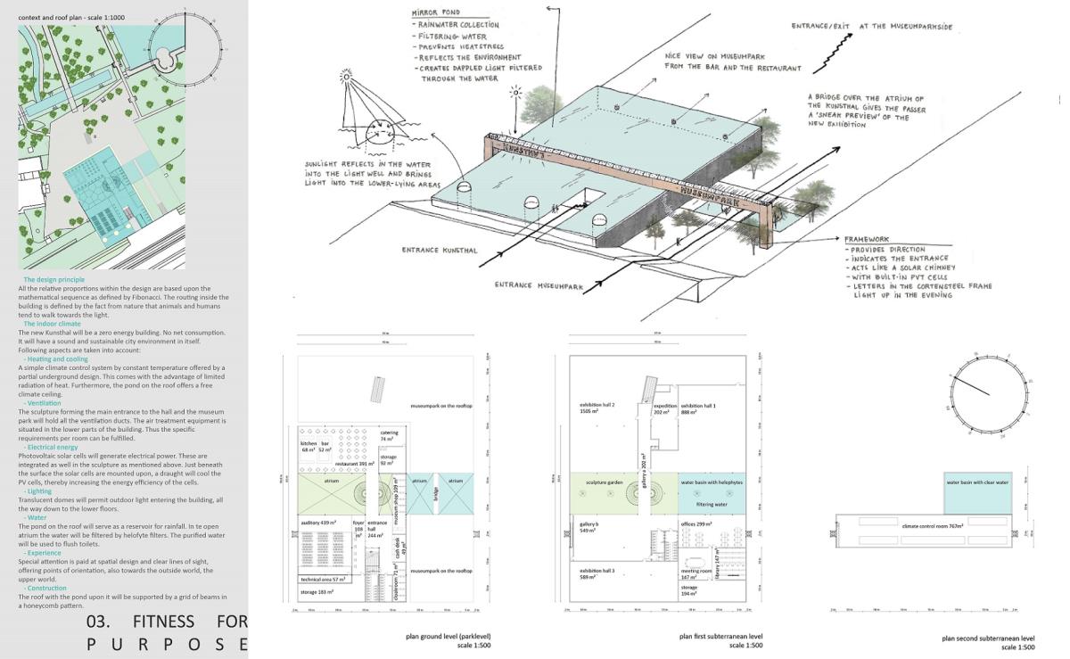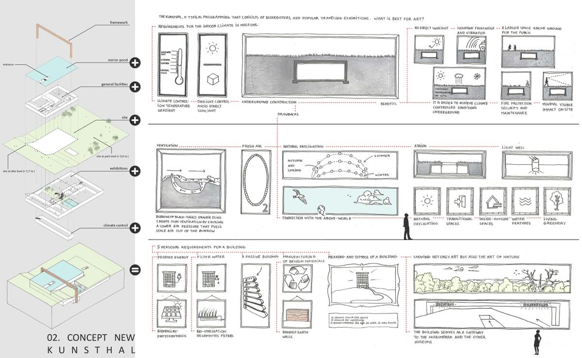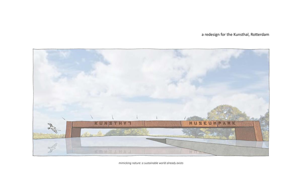 Kunsthal Rotterdam Part 1 Project 2015 Anneloes Kattemölle Delft University of Technology Delft | The Netherlands The Kunsthal in Rotterdam was realized in 1992 and put OMA (Office for Metropolitan Architecture) on the map of leading design bureaus. Despite the (international) success there has been a big controversy about the building which led to fierce discussions between architects and users. It seemed that the tone set by the Kunsthal was not in harmony with the melody of the environment and the public. As an architecture student I realize that architects need to become more mindful of the impact their work has on the environment. With the project of redesigning the Kunsthal, I got the opportunity to create an innovative building, where environmental and social sustainability are integrated into the architectural design. Mimicking nature’s wisdom is at the core of this design. With this philosophy the surface finishes of the Kunsthal are inspired by the self-cleaning mechanism of lotus plants reducing the need for chemical detergents and costly labor.With this new design I am aiming to evolve the Kunsthal into an internationally leading exhibition platform which sets new standards in sustainability, showing not only art but also the art of using nature to get a little closer to the future of architecture as I see it. Tutor(s) Engbert Van Der Zaag Jamie Van Lede
