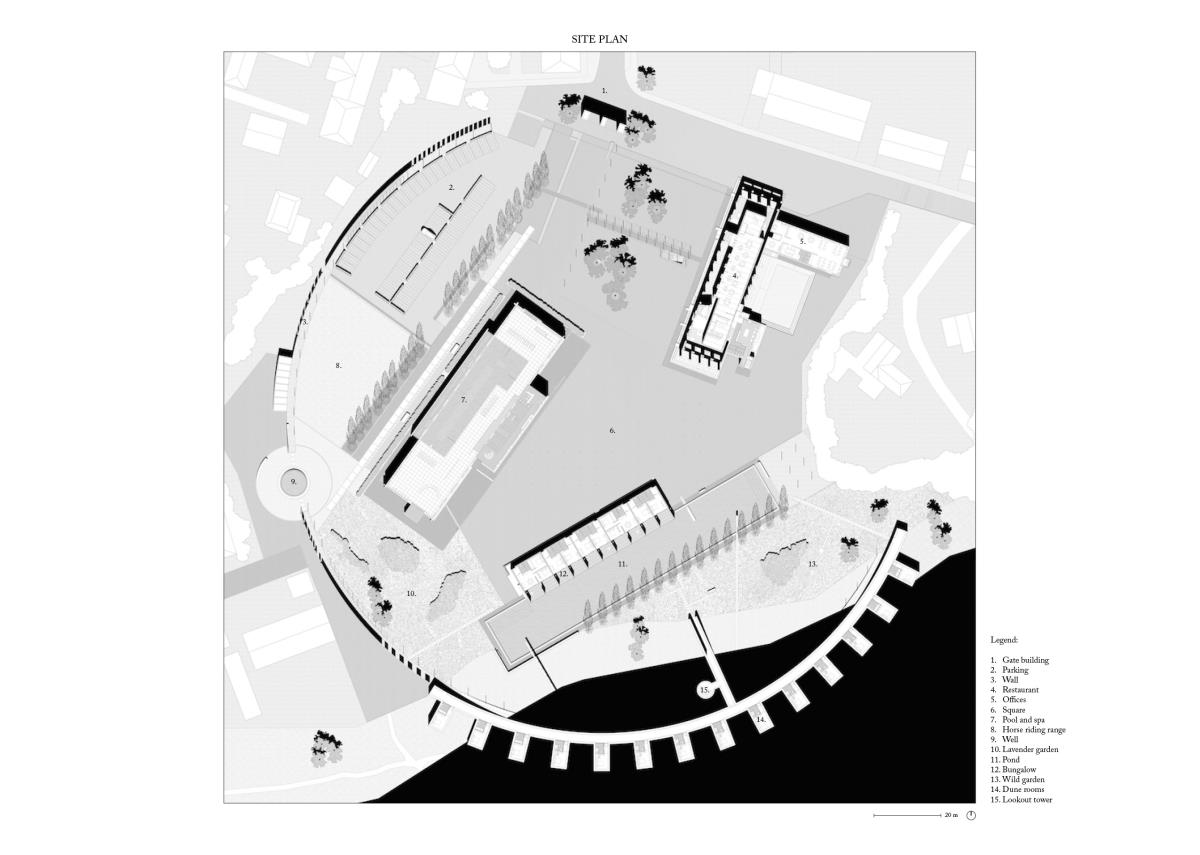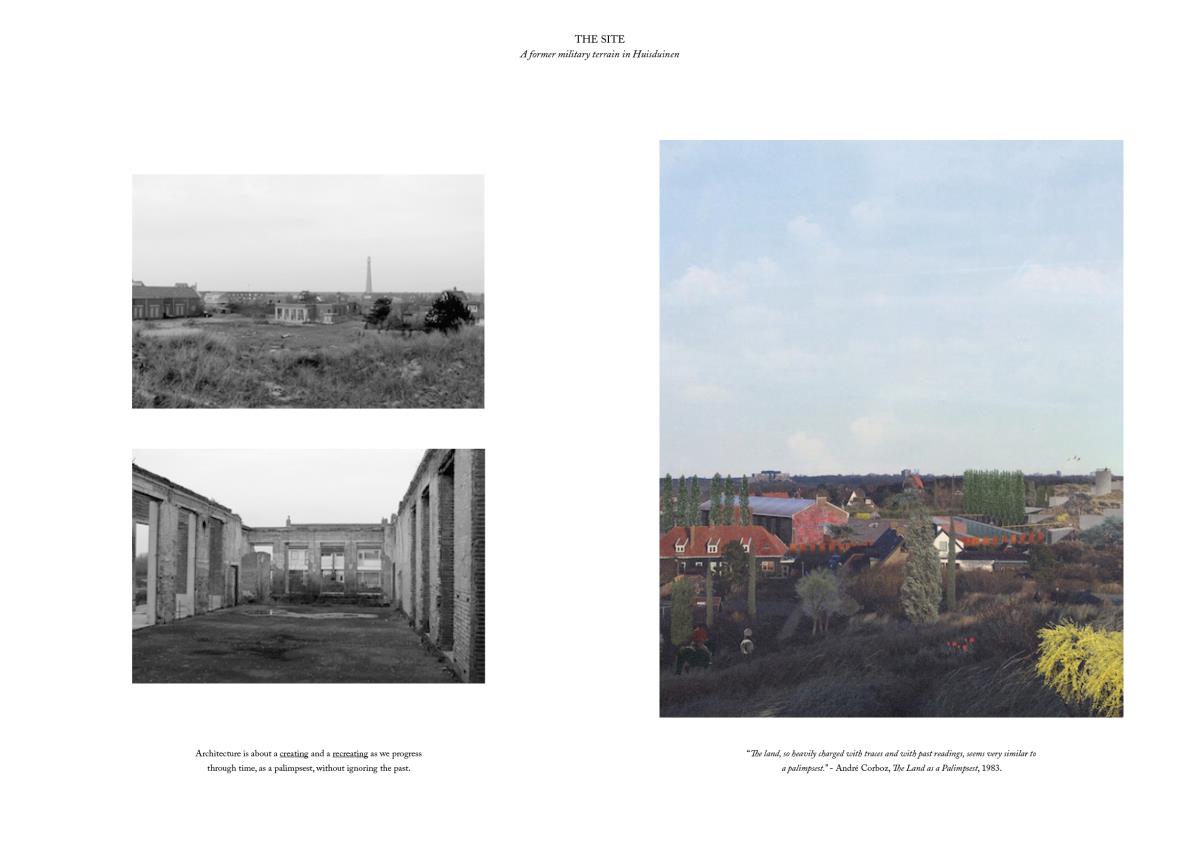 Villa Huisduinen – A Place for Retreat – Palimpsest in Architecture Part 2 Project 2015 Robbert Verheij Delft University of Technology Delft | The Netherlands I am intrigued by buildings, landscapes, objects and the relationship between them. I am also interested in the transformative processes of time and history. One of the beautiful and poetic theories that captures the continuity of history is that of the palimpsest.The project is two folded in the sense that it consists of a research and a design project. The research resulted in a book that portrays the concept of palimpsest in architecture in relation to six personal observations. For each observation an analysis is presented of a representative project of the following architects: Fernando Távora (place), Dimitris Pikionis (reuse), Rafael Moneo (memory), David Chipperfield (traces), Rudolf Schwarz (materiality) and Carlo Scarpa (dialogue). The design project evolved from the ideas developed during the research. For the project a derelict site - just outside of the traditional Dutch village of Huisduinen - is chosen containing three abandoned buildings made by the Germans during World War II. One of these buildings partially burned down five years ago and is now a ruin. The site is transformed into a place for retreat called "Villa Huisduinen", a secret oasis where people can rest, wander and enjoy the various aspects of the existing landscape. Tutor(s) Inge Bobbink Robert Nottrot Jan Van De Voort