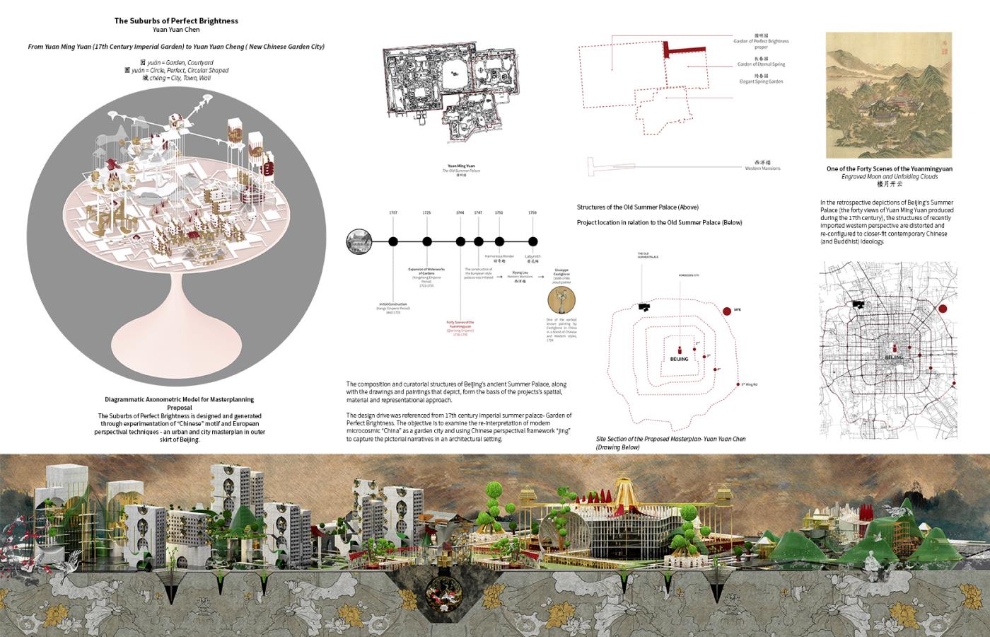 The Suburbs of Perfect Brightness Part 2 Project 2017 De He University of Greenwich | UK This project questions the current proliferation in use (and miss-use) of (overly) simplified cultural motifs by western architects in Beijing. By examining the compositional and curatorial systems of Beijing’s ancient Summer Palace - along with the drawings and paintings that depict it - the project endeavours to develop a relevant spatial, material and representational approach for a new suburb for Beijing. Tutor(s) Harry Bucknall