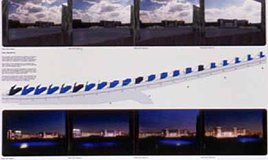 The intent of the project is to explore the Westway as a site of potential beauty and surprise. The project consists of 'constructed' vistas orchestrated around the assumed viewpoint one would have from a vehicle moving at speed along the carriageway underneath the Westway. The vistas are reconstructed romantic paintings interspersed with elements of the existing city. The images chosen were 'idealised' vignettes of Arcadian beauty and their introduction into the urban fabric is subtle inversion of contemporary issues of urban development on Greenfield sites.