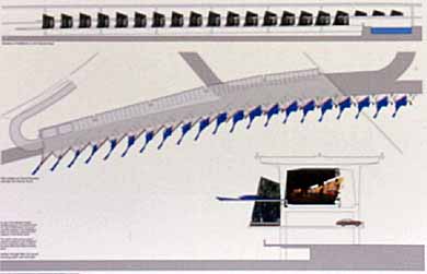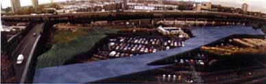 The 'City of Westminster Car pound' currently occupying the Paddington Basin is to be relocated partially under the Westway. The roof structures are to be partially flooded with strategic planting to create a series of 'foregrounds' which will be seen sequentially when driving along the road above.