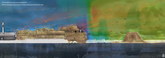 The Re-enabling Water Mosque of the Royal Docks Part 1 Project 2022 Suha Faisal Valiyaveettil University of Westminster London | UK The Re-enabling Water Mosque of the Royal Docks aims to use water as a symbolic, social and environmental factor to break down social barriers and provide resilient cultural places in East London, an area socially neglected and prone to future flooding.The proposal emerges from a close analysis of the environmental and social conditions in the area which revealed that despite the presence of large Muslim community, there is no local mosque.The Royal Docklands and its residents have been subjected to the economic dynamics that have also contributed to climate change: the demise of global trade, a new airport with private jet facilities, the coming and going of industrial factories, the destruction of the natural landscape, and growing economic disparities. Combined with the effects of climate change, particularly flooding, these factors have put a strain on local residents and their environment.The final design consists of a mosque in which water performs both symbolically – as a spiritual purifier – and environmentally – by using the Thames to harvest energy. The challenge is to combine aesthetic and cultural concerns with environmental ones to set the foundations for a circular local economy and embrace the requirements for simplicity and modesty of Islam. Tutor(s) John Zhang