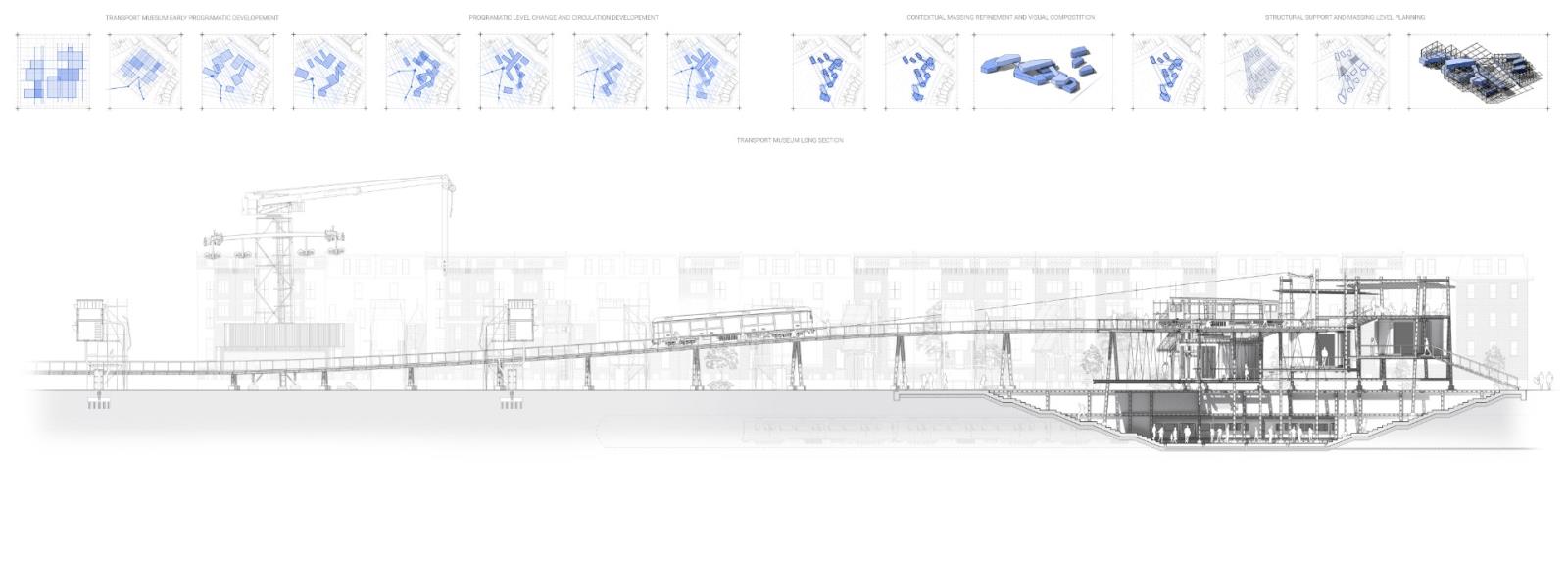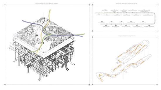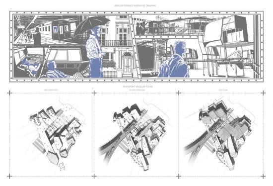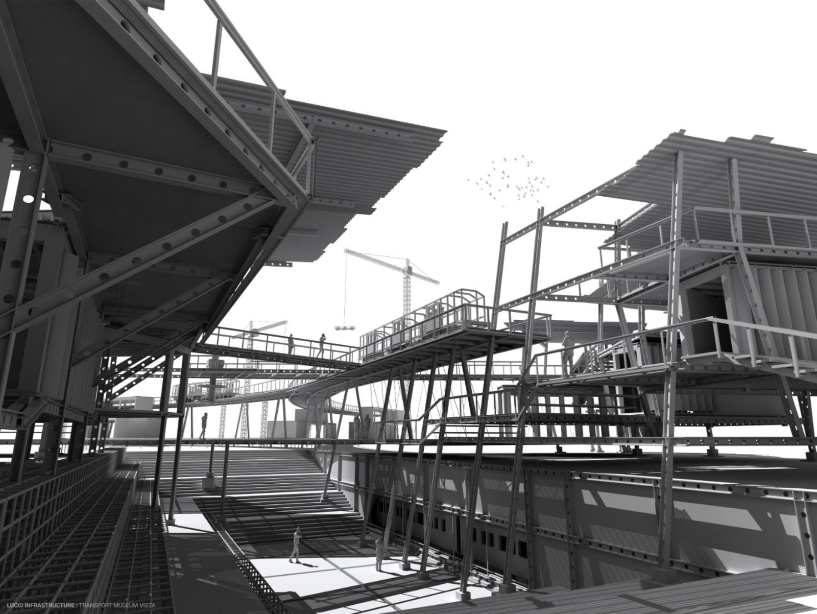 In Lucid Infrastructure, an investigation into how transportation and infrastructure form civic networks, utilising the rich transportation links present on the given site to the proposal's advantage by celebrating London infrastructure with sustainable practices in mind and, as a result, proposing a transport museum.