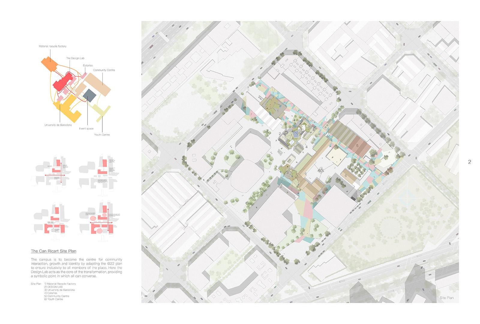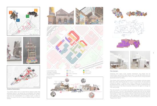 Memory and identity, exploring how architecture can utilise the past to grow in the future. Here the scheme aims to revive the historic Can Ricart factory and its surroundings, bringing it back to life for the community to reconnect with.