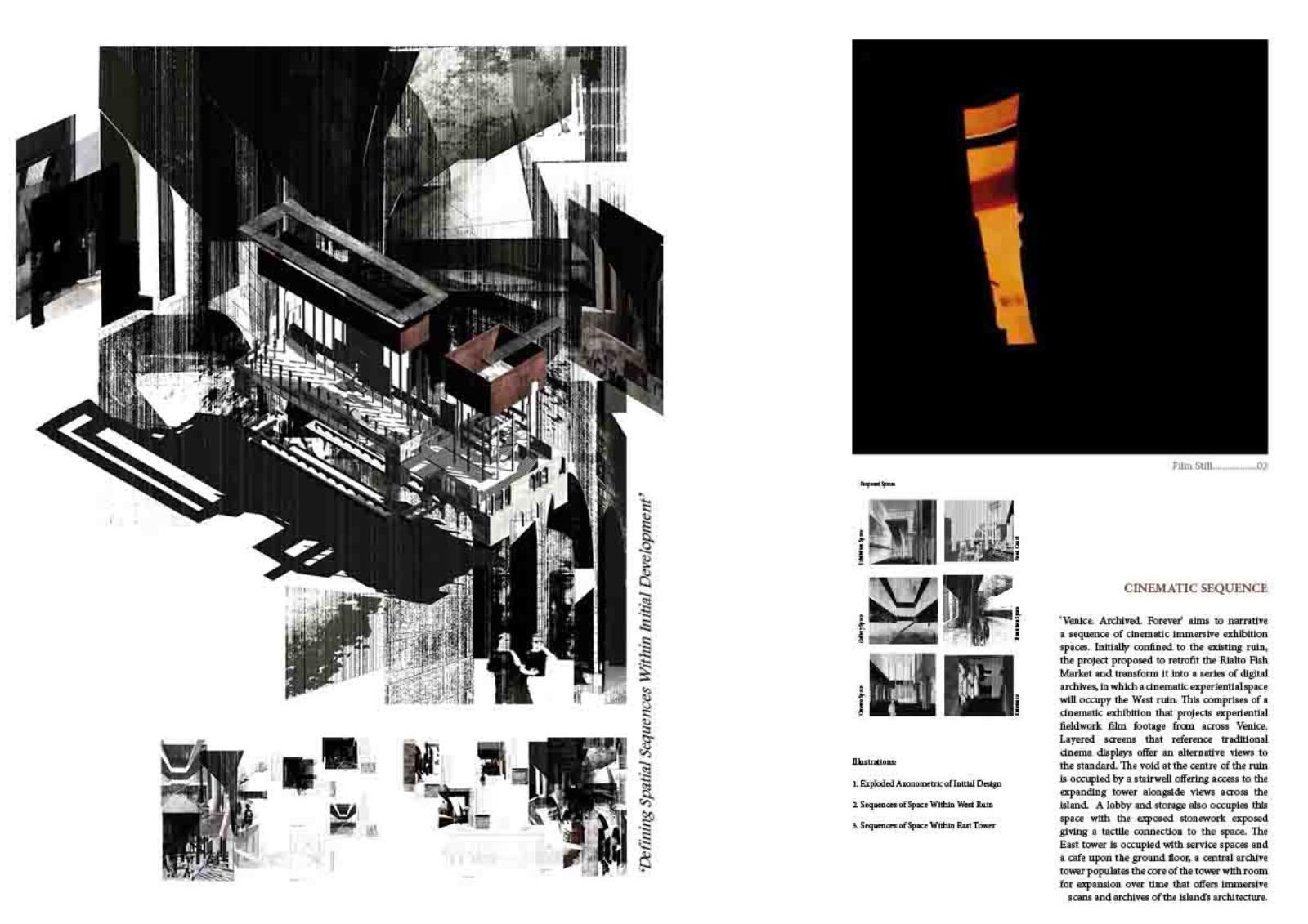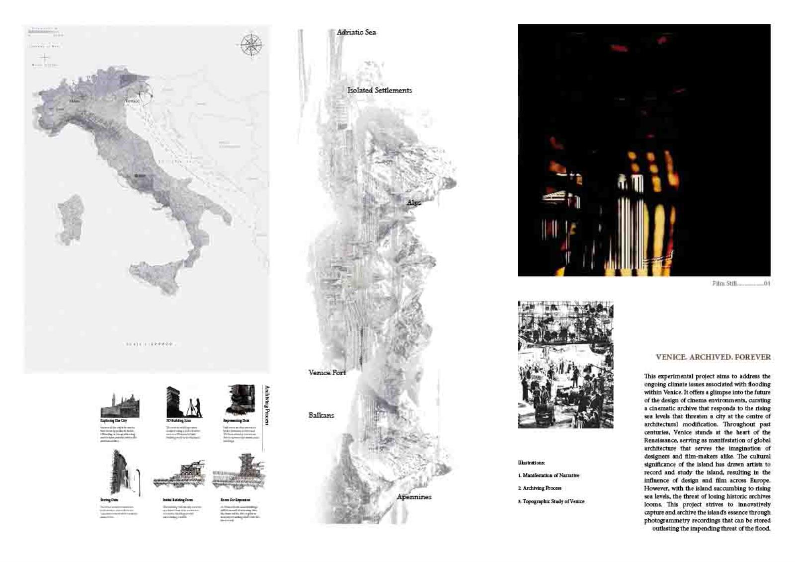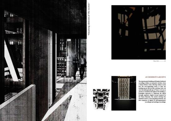 Photogrammetry surveying techniques look to catalogue Venice’s built form as a solution to severe environmental changes, ie: what happens when Venice eventually floods and is gone forever? The proposal redefines Venice as a floating archive.