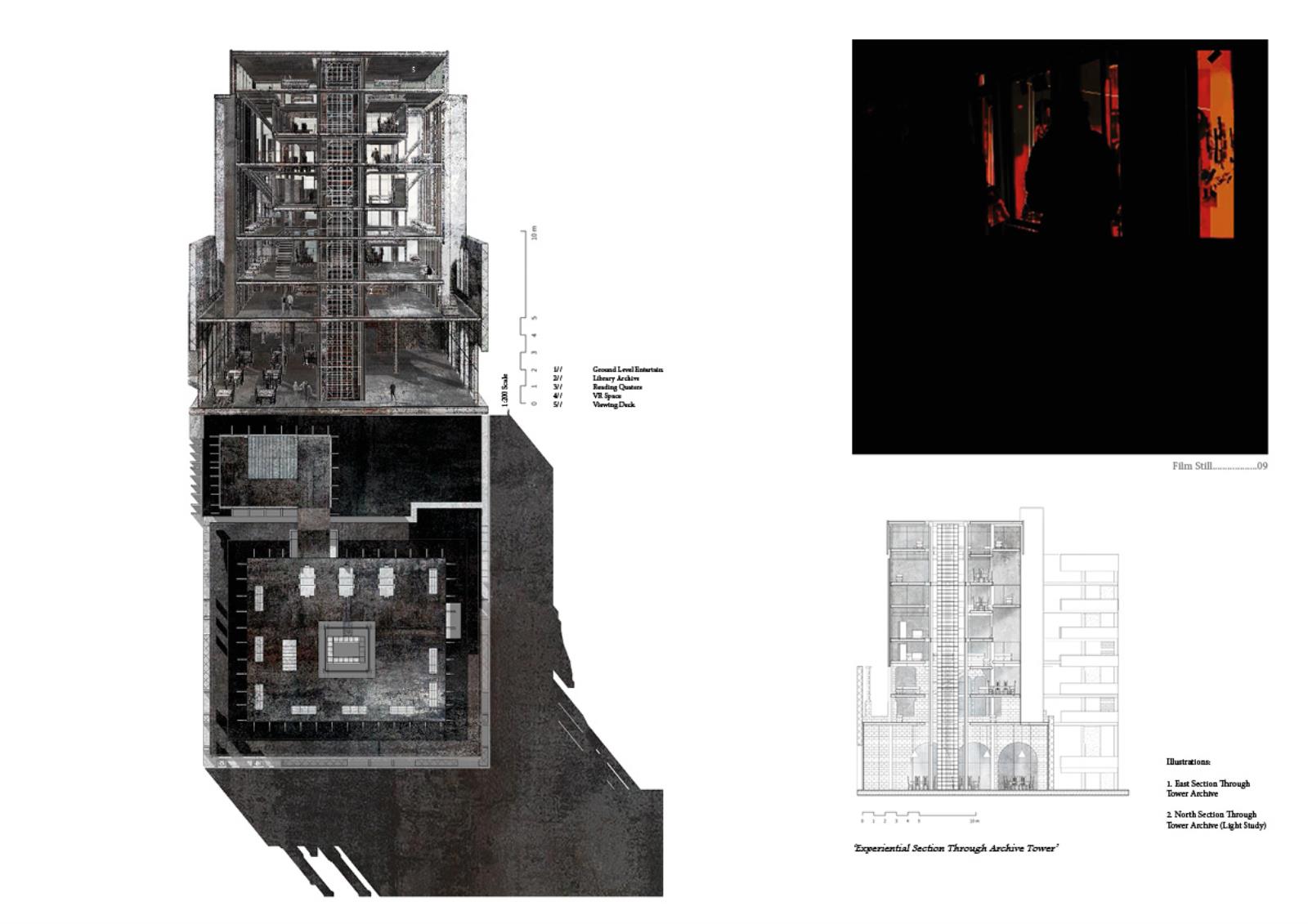 Through experimental filmmaking and scale model projection, spatial environments are reimagined, narrating the projected metamorphic growth of a new, immersive archive over time.