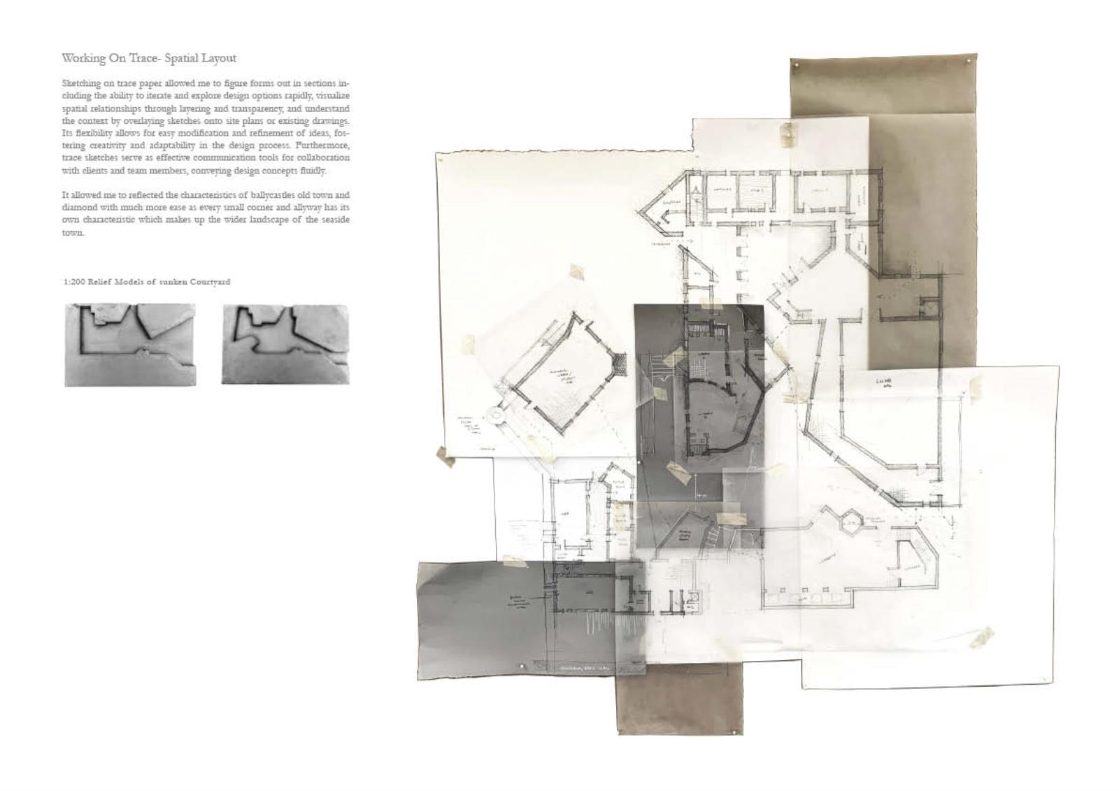 The iterative design process used layers of trace paper to create rich spatial sequences and unique geometries, resulting in dynamic, organically integrated environments.