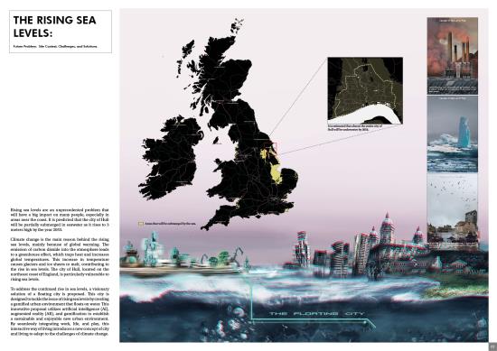 The Gamified City is envisioned to be an innovative floating city project which responds to the threat of rising sea levels, particularly in the city of Hull, which is expected to be partially submerged by 2053.