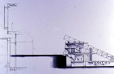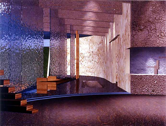 Sancofa Museum of St. Ann's Bay Part 1 Project 2002 Andre Baugh University of Technology Kingston | Jamaica In order to express my views towards transactions while satisfying the brief, I have designed a historical museum for St Ann’s Bay. St ann's Bay is the first town of Jamaica. It is located near the docking site of Christopher Columbus. Columbus, navigated by the Moors encountered Jamaica in 1492. This museum is intended to be a tool for perceptions. I chose to design spaces which shall instigate traversions through past, existing and potential times. Perceptions are created through the invocation of memory in various states. These states include literal, metaphorical and physical elements of the past while utilizing local materials, old and new.In attempt to allude negligence of Caribbean history, each space was derived from a reinterpretation of a particular phase of the past. The four phases include the tranquility, encounter, deceptive entrapment and freedom phase. most spaces are designed to take advantage of the hot air rising around and through them. this air movement further induces cooler air from the surfaces of both the still and moving bodies of cold water. To prevent moisture damage to artefacts, their glass display units contain silica gell undreneeth below the artefacts.The museum seeks to educate while agreeing with Haile Selassie when he said, "A man who knows nothing of the past is like a tree without roots". Its intensions are best summarised by the Arawak word "Sancofa". Sancofa is the Arawak translation for an eagle looking back in the wind whyle he flys forward through infinite spaces. these spaces are no different to possibilities in the caribbean. This project, situated in St. Anns Bay Jamaica, required the student to make a civic intervention into a historically charged, small urban context. The specific programme of the museum also required the student to be aware of the notion of history as a generating force. However, ideological exploration was highly encouraged, and the student was not restricted to duplicating the vernacular.From the beginning, the ideas of this project were in constant development through analytical explorative drawing and model making, writing and dialogue. The Idea of the Journey through an experience, as a method of storytelling was effective and contextually relevant. The student exhibited not only a large capacity for, and understanding of, spatial development and representation, but also a dexterity of formal language and use of materials. This project also showed the student's facility for independent thought and expression, it was ideologically strong, well worked out and ultimately very well presented.