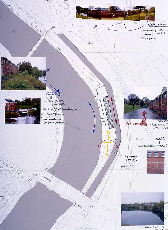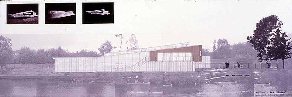 Boat House For Rowing Club / Primary School Pollokshields, Glasgow Part 1 Project 2002 Shimpei Katayama Mackintosh School of Architecture | UK ChapelThere are meanings in the natural disposition on the island. Standing stones, forest, farms, streets. I connected these casual pieces through the journey on the island. Then, the journey became a story. The story of the last remaining forest. A chapel-contemplation space found its place in the story, and on the island.SchoolThe project started with a simple diagram, which consists of vertical bands of classrooms and horizontal programmes. After undergoing a series of discoveries and compromises, the 2D plan jumped forward dramatically to the functioned 3D carpet. Children will explore the simple arrangement of spaces and sensation of visual complexities.Boat HouseThe boathouse is a private building for rowers, where activities on land move on to water. The building is situated in the park at the edge of the city, surrounded with various movements, sighted by people from various points. It becomes a public building. The boathouse organises and provides a transitional experience. The project work consistently demonstrates a highly considered conceptual approach, intelligently worked through and imaginatively presented. Three projects, a boathouse on the River Clyde, a primary school in Pollokshields and a chapel on the Island of Bute are represented.