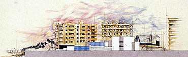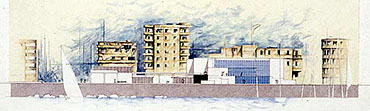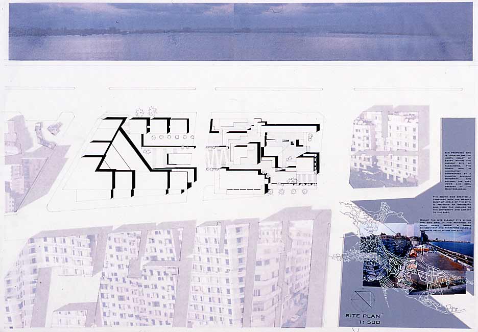 The design for a European Embassy in Alexandria started with a strong idea about how to handle the site and building. Rather than seeing the building as a fragment of colonised territory, Chris arranged it so that the site was in effect 'given back' to the citizens of Alexandria. It is one of the few sites left along Alexandria's Mediterranean coast that is as yet unbuilt, and by sinking the building underground its openness is left palpable, while the opportunity was taken to make the space into a dynamic public landscape. The public and private functions of the embassy are skilfully organised, using courtyards and lightwells in such a way that the accommodation worked well environmentally - learning from traditional methods of climatic modification. The work submitted to explain the scheme was comprehensive and included some wonderful models that showed its creatively considered interior and exterior spaces.