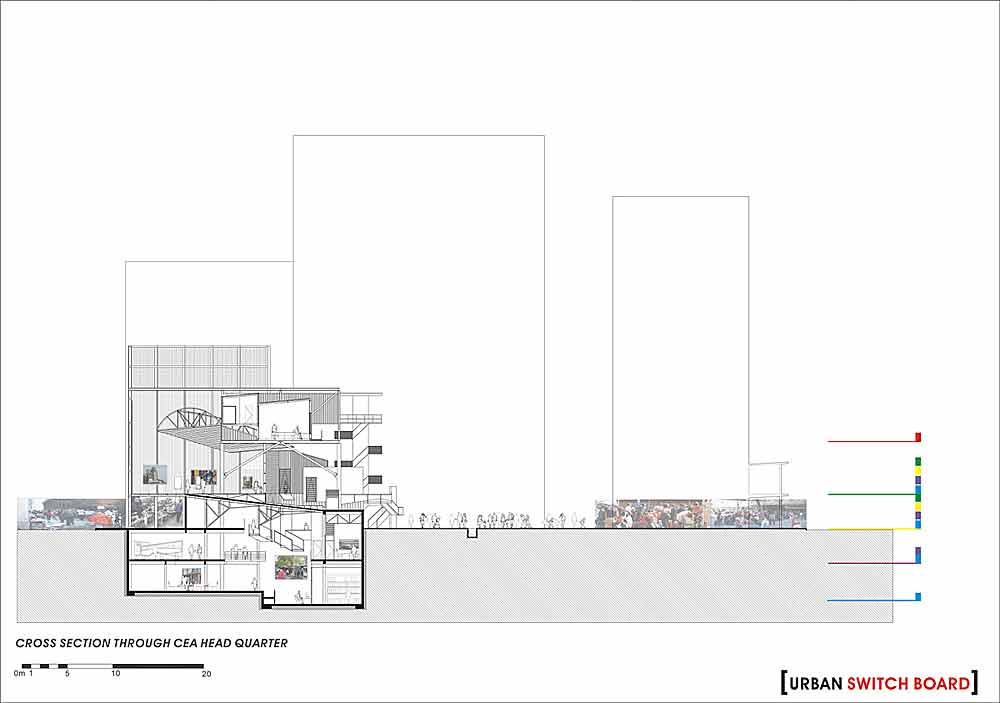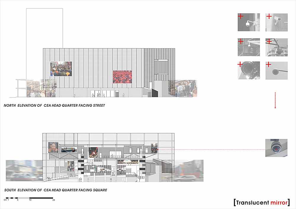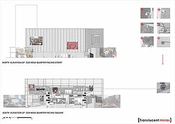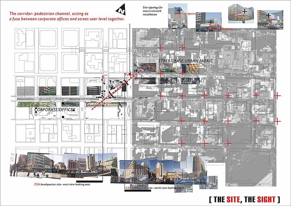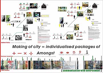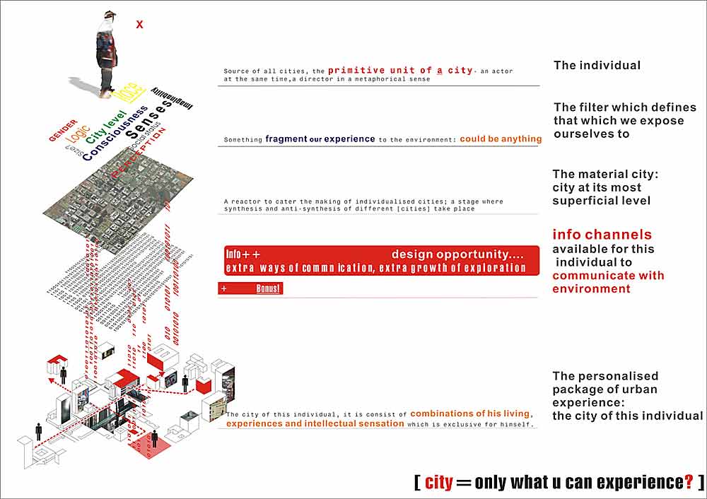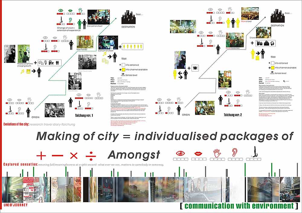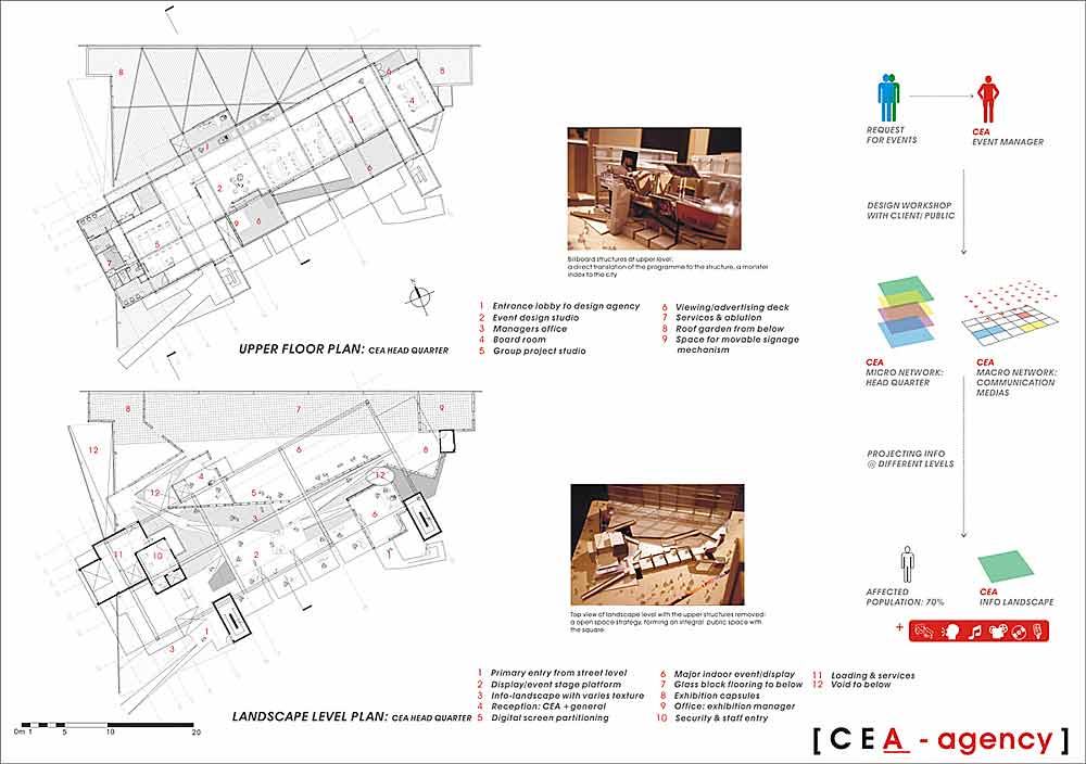 Infoband - City Event Agency Part 2 Project 2003 Pin Wei Dylan Kuo University of the Witwatersrand Johannesburg | South Africa Looking at city as collages of personalised experiences, this project is investigating the potentials to energise the city of Johannesburg, by expanding the variety of living experiences through info-networking different levels of urban community. An urban communication network- CEA, acting as urban event developer, operating to promote public events as median to integrate different social levels within Johannesburg. This approach leads to the design of info-communication installations at varies scale, which are capable to deliver information, record and broadcast live scenes to be infiltrated into different social levels, stimulating real time social exchange across different communities. The point of departure for this thesis project was the problematisation of the city as an intense web of overlapping information and communication circuits. The student devised ways of mapping these, from the most local (cardboard placards advertising hairdressing salons in the upper stories of buildings, leaflets offering urban services etc.) to circuits of more global reach (telephone pay stations, internet cafes etc.). The design component of the project was a “motherboard”, a City Event Agency, through which these circuits could be augmented and amplified, and creating a new public space in the city, as an element of urban renewal. Satellite, parasitic electronic notice boards were located throughout the city, giving access to its information.