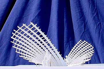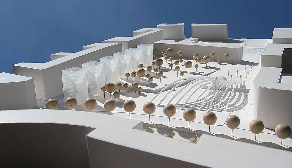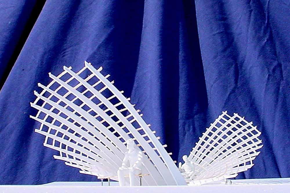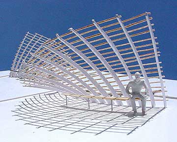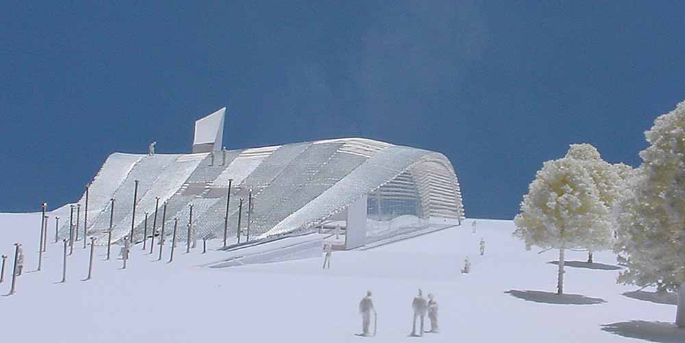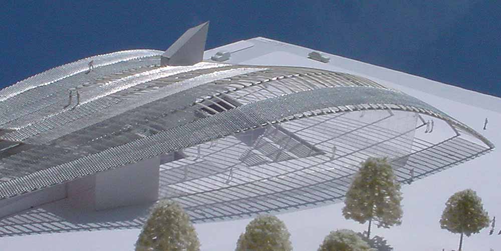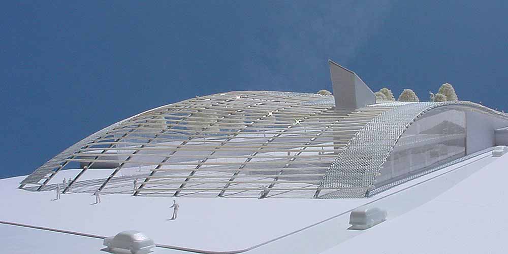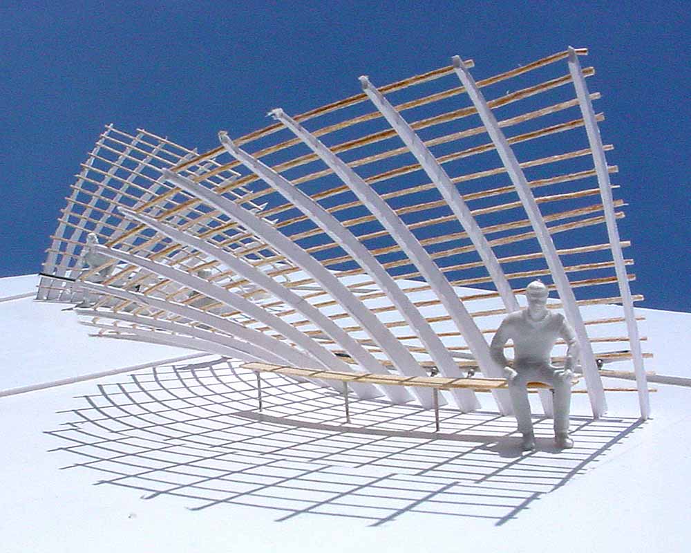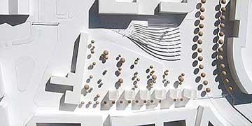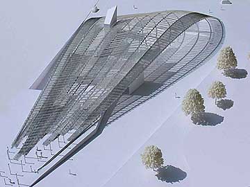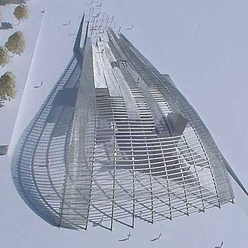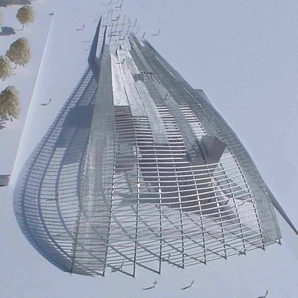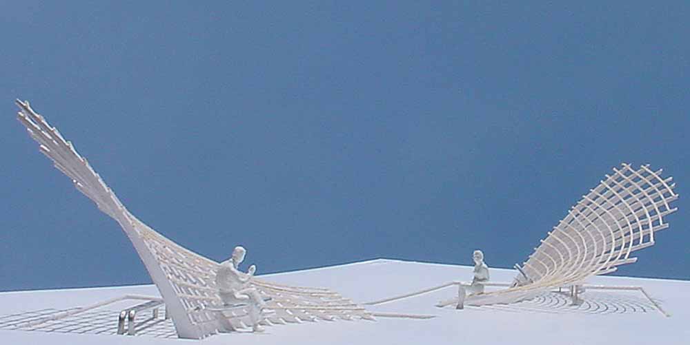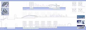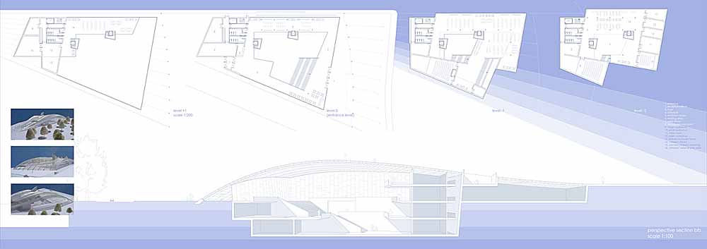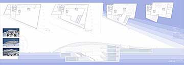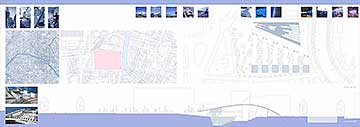 Mediatheque, Paris Part 1 Project 2003 Christopher Bungard University of Portsmouth | UK This project explores the idea of a landscape building within an urban park in Paris. A form has been created through the ‘peeling back’ of the parks skin and by the placement of a volume underneath it, much like a person pulling back a duvet and getting into bed. This skin extends beyond the roof and forms part of the park, drawing the movement of people up and over the building. The external form as well as the interior environment changes as the sun follows its daily path with the semi-transparent roof filtering light into the mediatheque creating light and warmth. As you enter into the depths of the building ‘dark’ spaces are created which house the digital media facilities. The sensation of being in the underground darkness contrasts with the light airiness of the traditional library sections.The project examines various scales: urban, building and human. A ‘Parisian’ boulevard dissects the site, creating two contrasting parts. A series of formal buildings incorporating affordable housing and commercial units sits opposite the mediatheque drawing further activities and movement through the park. Along one edge of this boulevard sits a row of sculptural park seats that integrates the free flowing form of the mediatheque with the rigid forms of the housing. This ‘urban seat’ is a place for contemplation, it is a sculpture in the parks topography, its function is to entirely accommodate people as it expands on the idea of the park bench. The duality of the form gives the option to sit and watch, or venture onto the ‘wave’ skin and lie down forgeting about the city. I get the impression that Chris is a late developer.I tutored him for the last project in his third year and he was outstanding. The concepts and ideas personally promoted were enough for the whole studio. He was therefore the catalyst for the group. He demonstrated a mature understanding of the challenge of the programme and his approach was intelligent and brave. The models he used to comprehend the spaces and junctions were exceptional and his exploration of options and variations were both sensitive and rigorous. It came as a surprise to me that his previous work fell short of architectural ambition that this programme exhibited . He has certainly outgrown the office experience he had with W. S. Atkins! Tutor(s)Sir Colin Stansfield-Smith