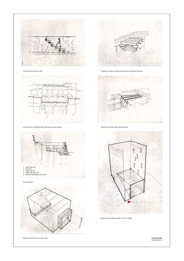 Wholeness? Part 2 Dissertation 2011 Paul Cashin University of Portsmouth | UK Ever since my first experience of sublime space I have been searching for a plane of authenticity in the realm of Architectural discourse. I have felt and appreciated; yet at the same time, not been able to isolate the causes of this level of engagement. By reading the theories of others such as Heidegger, Pallasmaa, Goethe and Ruskin, it seems that the ineffable qualities of a space reside in the phenomena of ones own actions. Thus I was attracted to the poetic connotations of studying tectonics; encouraging the act of stepping outside ones comfortable realm so to experience another world, moving ever closer to an understanding of the tectonics behind this phenomena of authenticity.At the beginning of this Thesis I travelled to Scandinavia. Within the Nordic context there is the understanding of the importance of place making as an opportunity to test tectonic ideas of dwelling, such as with Aalto’s Experimental House in Finland. Later in January I travelled to Morocco, visiting the Souks of the Medina in Marrakech and the sparse settlements of the Atlas Mountains. This was partly in order to find an appropriate site in the Mountains for a Pilgrims Retreat project, but also to follow in Aalto’s footsteps as he himself ventured south so ‘to learn what he had previously forgotten’.In parallel to several design projects I began to write about the ideas previously visited in reading and from the experiences of my transgressions. This literal work, supported by experiential and analytical writing, claims that this understanding of authenticity can be found in the idea of ‘wholeness’, and that the notion of the ‘whole’ is the result of many parts gathered and composed in order to reveal something previously hidden. ‘Wholeness’ is therefore not just a composition of parts, but also an idea of completeness, where nothing more can be added or taken away, and where some perception of truth is revealed. This view of truth, in the classical translation ‘Aletheia’, is where one can tap into this authentic plane. The thesis question is therefore simply ‘Wholeness?’ Tutor(s) Nicola Crowson
