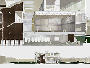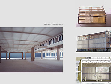 Breaking the Cage (Humanising the Institution): A Secondary School on London Fields in Hackney Part 1 Project 2004 Ulla Tervo London Metropolitan University | UK An institution, such as a school, both restricts and liberates the individual: the restrictions should be counterbalanced by providing for the individual user, and not only for the movement of masses of people. A single, deep-plan block was taken as a challenging starting point for the project of deinstitutionalising the institution or, metaphorically, of 'breaking the cage'. Specific points were proposed for achieving this, which were then formulated into a building design, and carefully thought of within the more general social and political context, as well as within the more specific context of the site on London Fields in Hackney. Two educational establishments: a secondary school and a Pupil Referral Unit were proposed to form a cluster with the existing primary school and nursery. The project consciously attempted to find a balance between the various, observed extremes: the 'institutional' and the humane; the natural and the artificial; repetition and difference; the physical reality of the park and the virtual reality of the advertisements and signs of the surrounding cityscape; hidden and revealed views; robust and delicate materials; the universal and the particular; and not least importantly, the theoretical and the practical. The project is a design for a secondary school sited at the southern edge of London Fields, forming an educational campus in conjunction with the adjacent existing primary school and nursery. The school is conceived of as an institutional cage that is cut into analogously and physically in an attempt to humanise the environment in which children can learn and interact. Internal and external voids combine to allow for the movement of air, the modelling of light and a series of complex spatial relationships. A layered façade of glass and steel mesh curtains act as a counterpoint to the order of the overall composition.