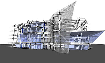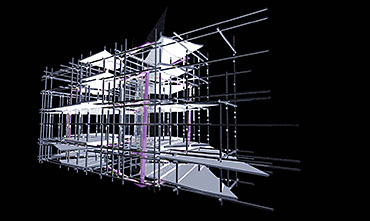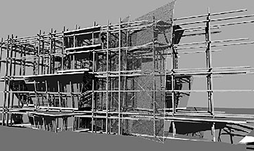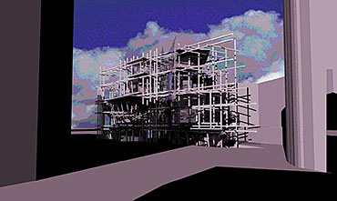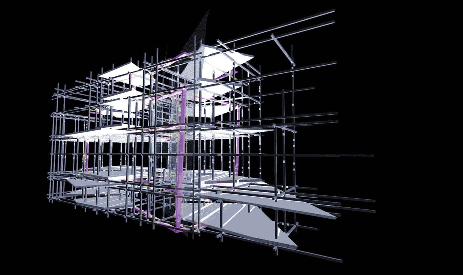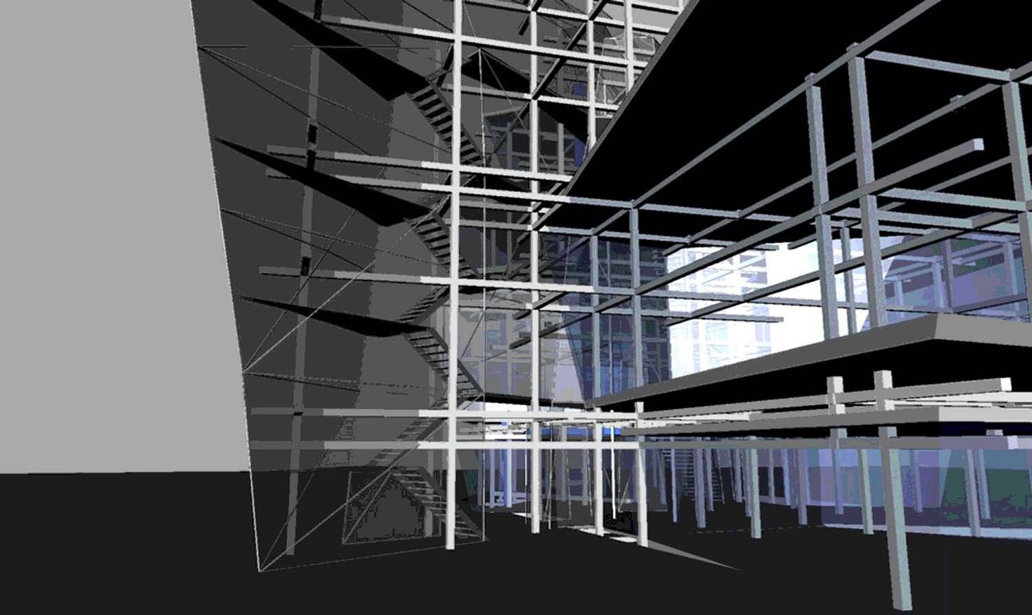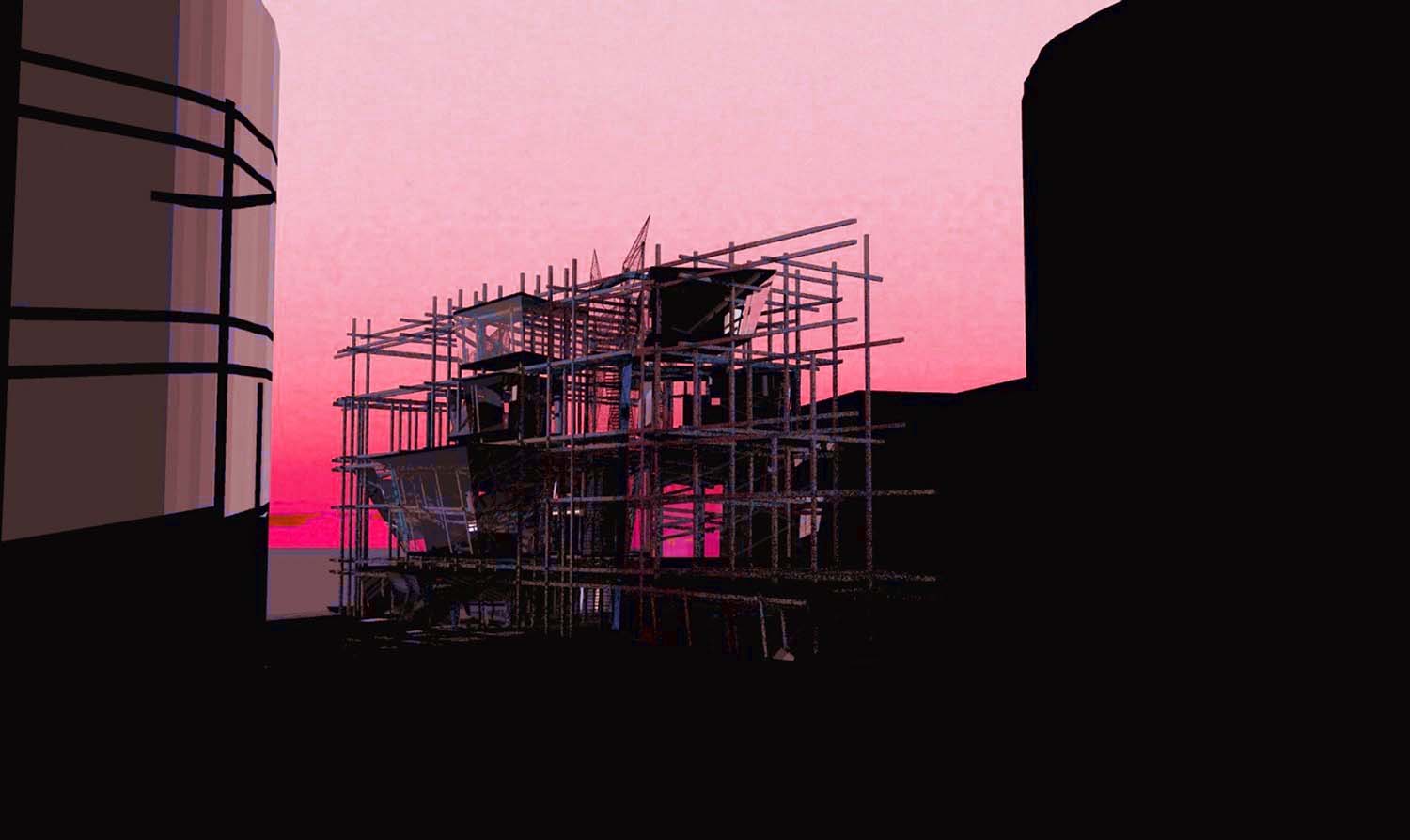 Liverpool Biennial Project Part 1 Project 2004 Neil Charlton University of Liverpool | UK The notion of the rhizome was taken as a metaphor to assemble a structure that acts as a point of connectability for different functions to be linked unhierarchically. The Biennial Centre is, thus, just one common point on an ephemeral network of thoughts, actions, memories, motives, changes and movements each following its own process of permanent becoming. Art, its creation and appreciation, were considered to be temporalities of a rhizomatic system in evolution.With this in mind, The Biennial Centre was conceived not a as the start or culmination of an experience, for these expressions imply beginnings and ends. The Centre is simply a waypoint from which individuals may be able to appreciate their position in the complex rhizomatic structure in which art, as well as themselves, are inscribed. According to the notion of the rhizome developed by Deleuze and Guattari, social structures do not exists in a vacuum but are always intertwined in complex ways. Thus, the purpose of this project, the building for the Liverpool Biennial, was to unsettle the experience of the biennial by displaying not only finalized art pieces created by internationally recognized artists but also unveiling the numerous other systems art is attached to: economics, politics and also architecture.For this reason, the architectural response is an unfinished and constantly changing structure where different elements, systems and functions meet and clash at the same time. Communication is permitted between the different components of the building —so as to allow for the building to fulfil its purpose—, yet it does not try to reconcile the differences between systems. On the contrary, architecture appears as a tool to reveal the complex reality of art institutions such as the biennial.