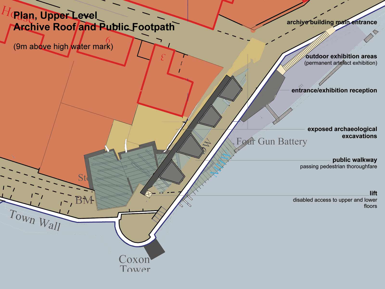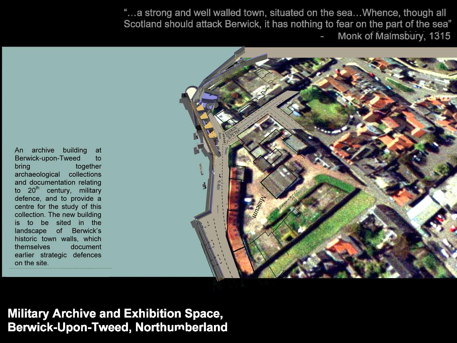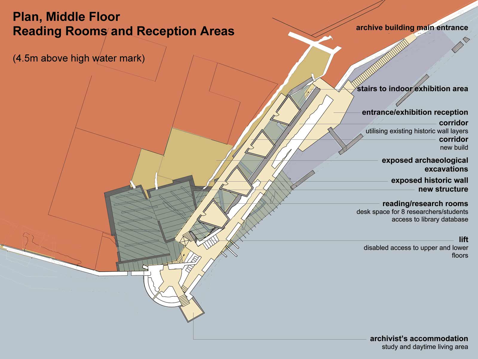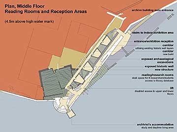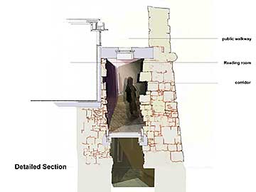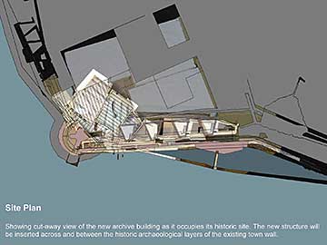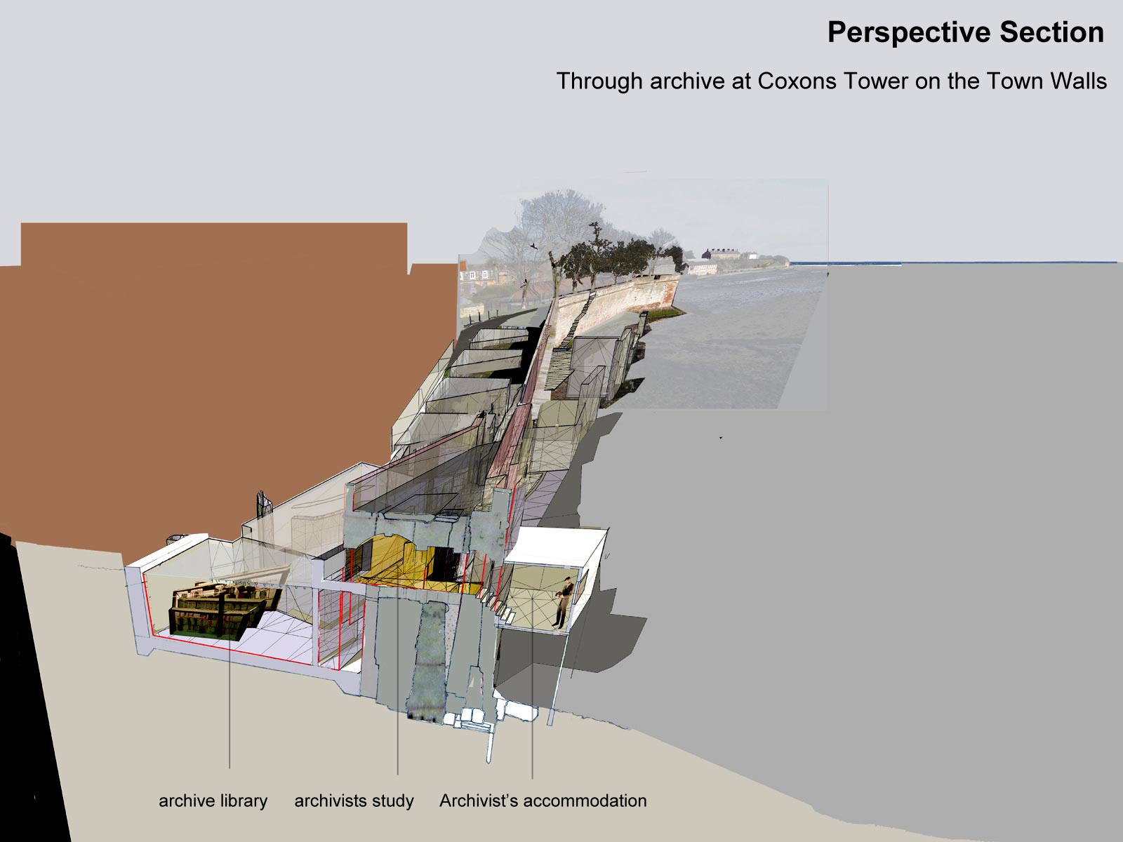 The proposed archive is an underground structure; it will reveal the dynamic and evolving history of Berwick’s defences through a detailed investigation and exposure of it’s hidden archaeological layers. It inserts a 21st century structure within these layers, which in turn acts as an archaeological filing cabinet to archive the collected information.