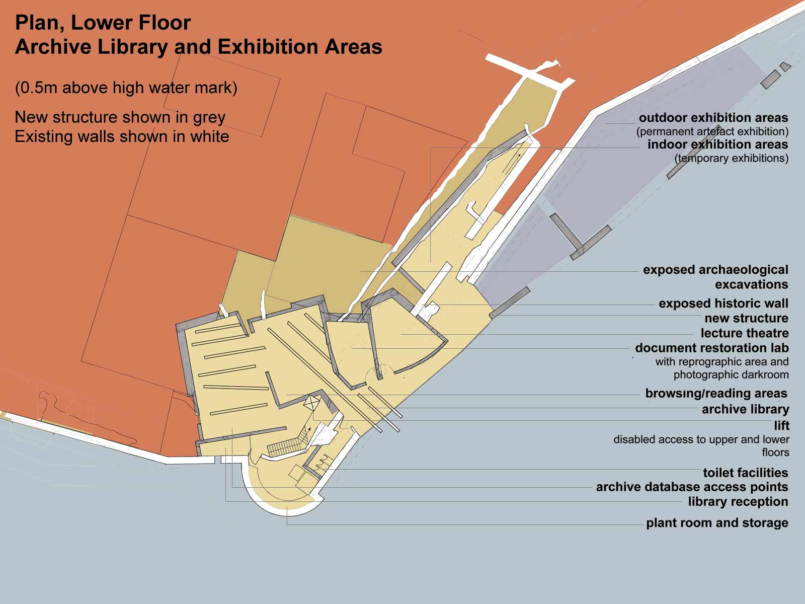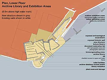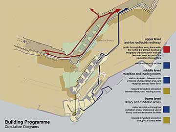 The building incorporates a library, permanent and temporary exhibition space, lecture theatre and document restoration lab. It will function both as an educational centre for research purposes, and as a exhibition space for day-to-day visitors.