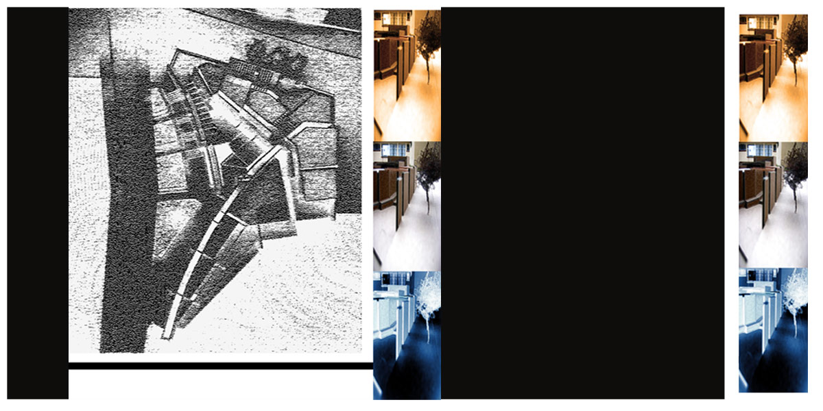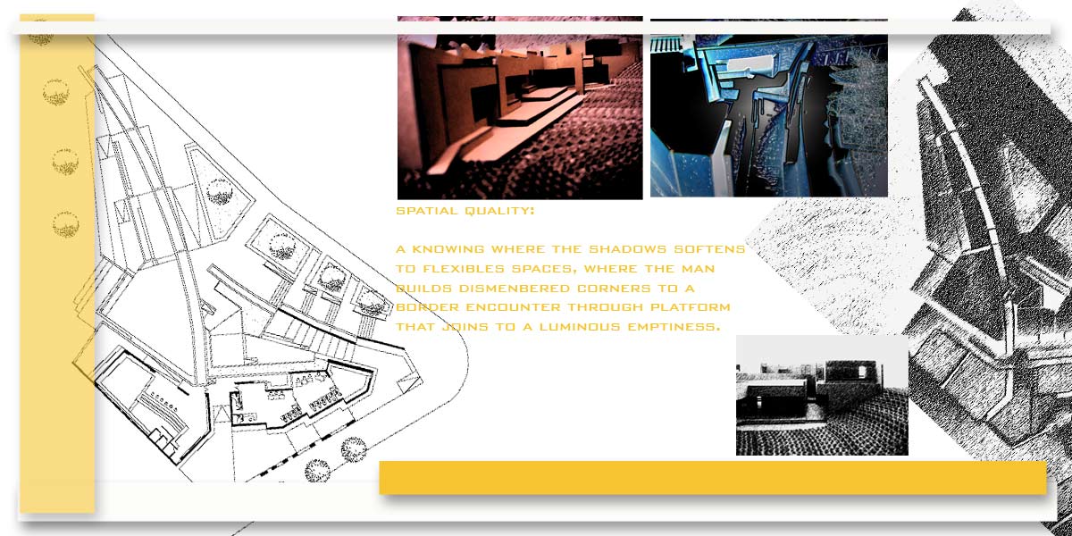 A knowing where the shadows softens to flexibles spaces, where the man builds dismembered corners to a border encounter through platform that join until a luminous emptiness.
