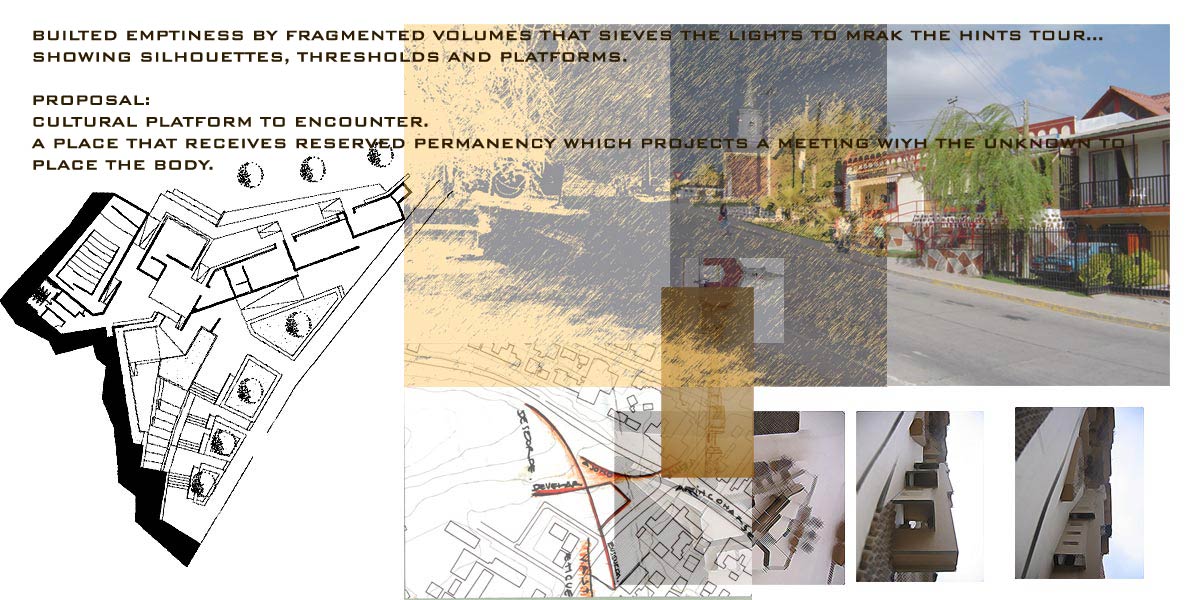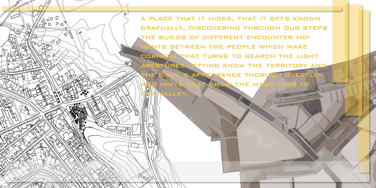 A place that it hides, that it gets known gradually, discovering through our steps the builds of different encounter moments between the people which makes corners that turn to search the light apertures letting know the territory and the body’s appearance through overflowed hints that show the magnitude of the valley.