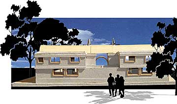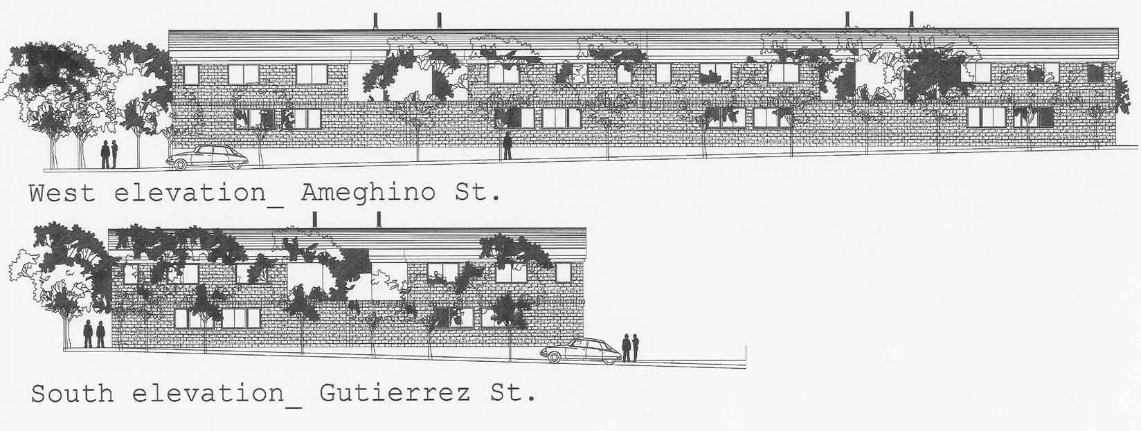 Housing in Mendoza Part 1 Project 2005 Pablo Celis University of Mendoza | Argentina The location limits are closed with housing units with resemblance of industrial bays; inside, a space recalling a kind of switching yard, sidewalks and expansions like walkways, a steak-hut as a kind of personnel canteen and the vehicular access, railway outlet for finished products.The whole’s image arises from a historical- critical review of the location’s earnest and constructive typologies, thus the design is charged with meanings and allegories bonding it with its environment.Not a mere historic reference, but bringing recalls of native ambience to the present time and transmitting it to the times ahead. With the precise aim of developing an architecture defined by important meanings, we developed a project with a view to the memory, the image and the present times; so, it’s organized in three chapters: 1 - Memory of forms and materials (old wineries, ancient railroad facilities that emerge in our cities like lighthouses, traditional brick masonry). 2 – Image, by offering a representative idea of Argentine urban culture in 2004. 3 – Times (the project considers the present times limitations and dangers), taking care of energy resources developing only a sustainable project.