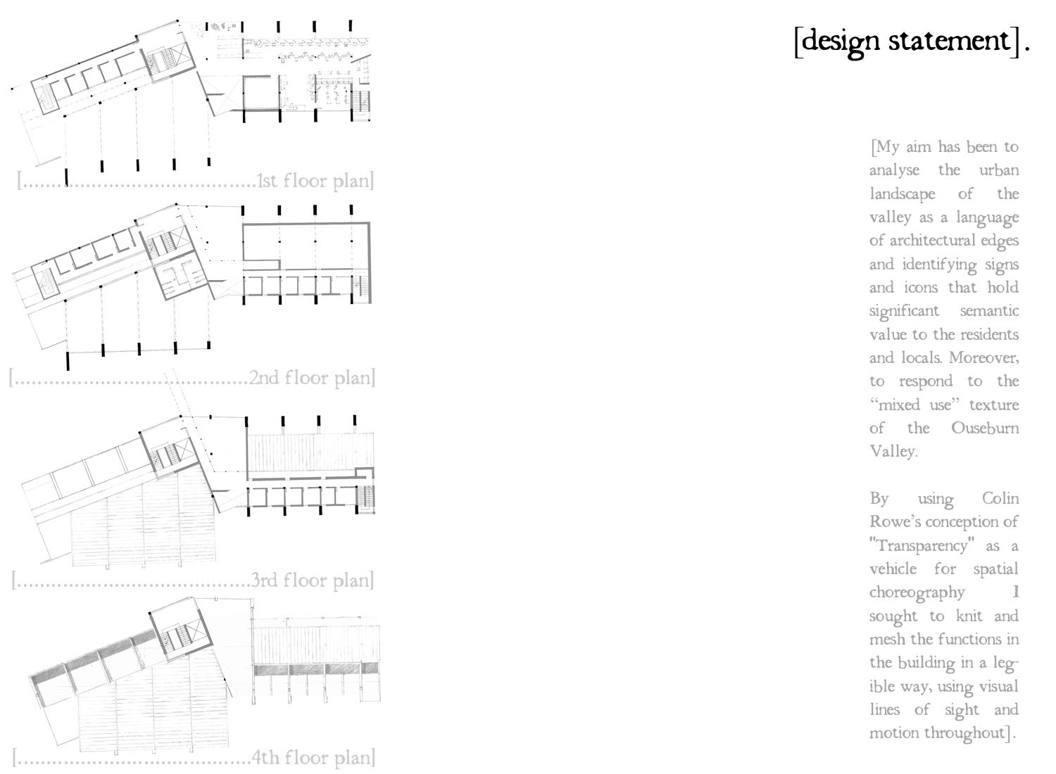 By using transparency as a vehicle for spatial choreography I sought to knit and mesh the functions outlined in the brief into the texture of the 'mixed-use' Ouseburn landscape.