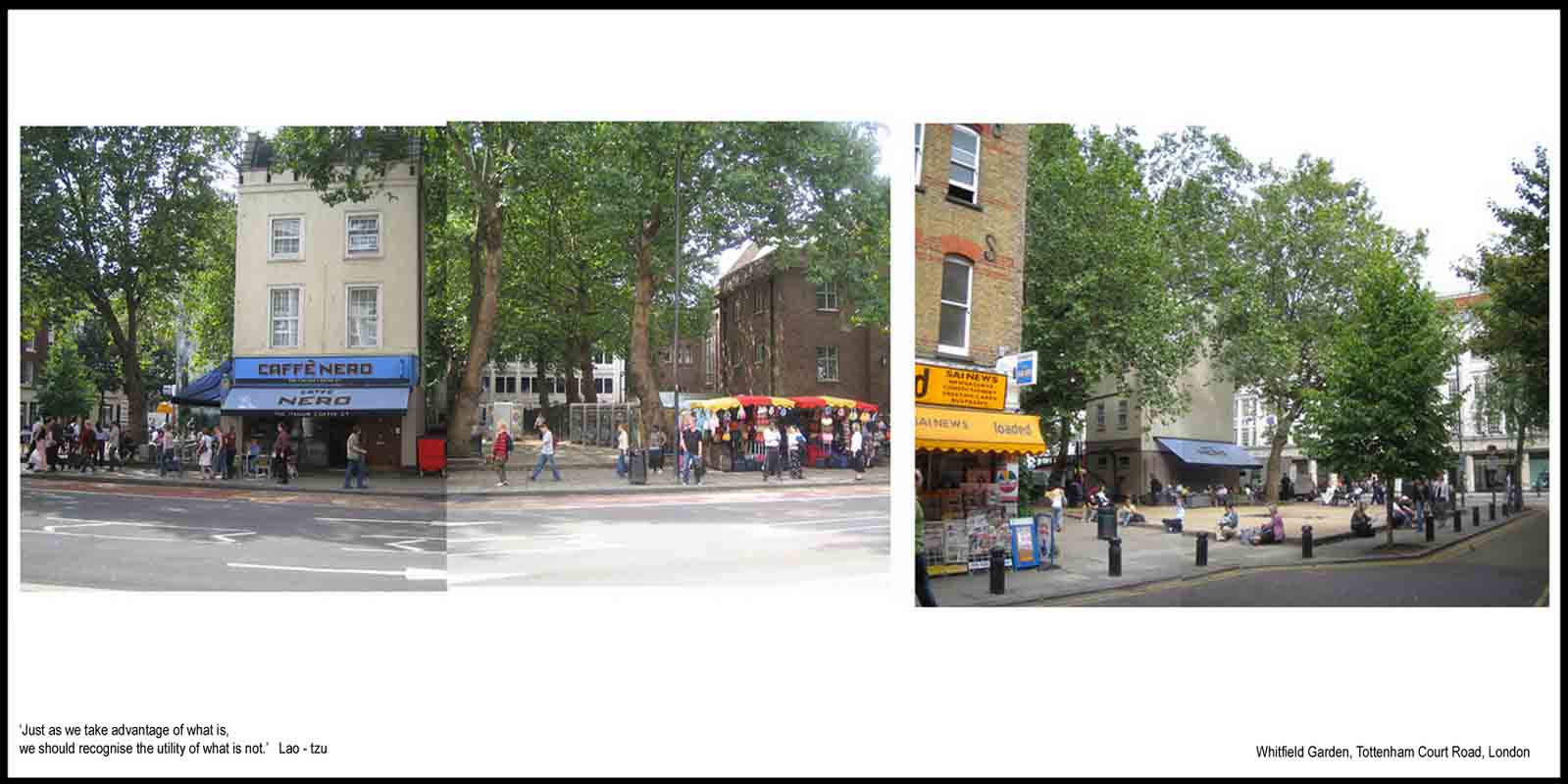 "Just as we take advantage of what is, We should recognise the utility of what is not" Lao - tzu. Whitfield Garden - A public space that occupies the left over ground of an eroded city block