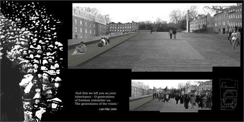 Parnell Square today is a disappointing ternination to the cities primary thoroughfare. The proposal seeks to offer a city space, for retreat, recreation, demonstration, assembly and all other types of theatrical event