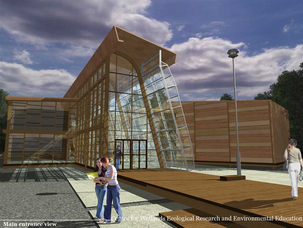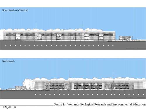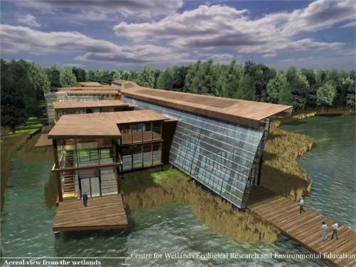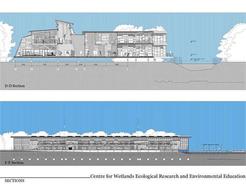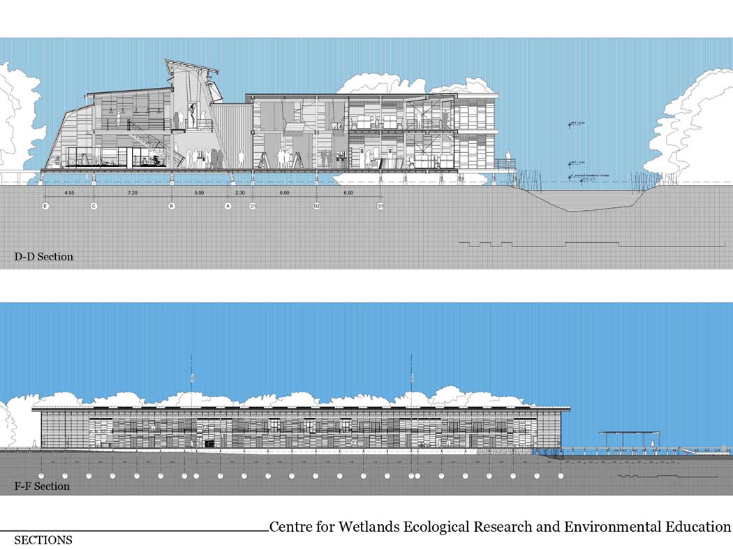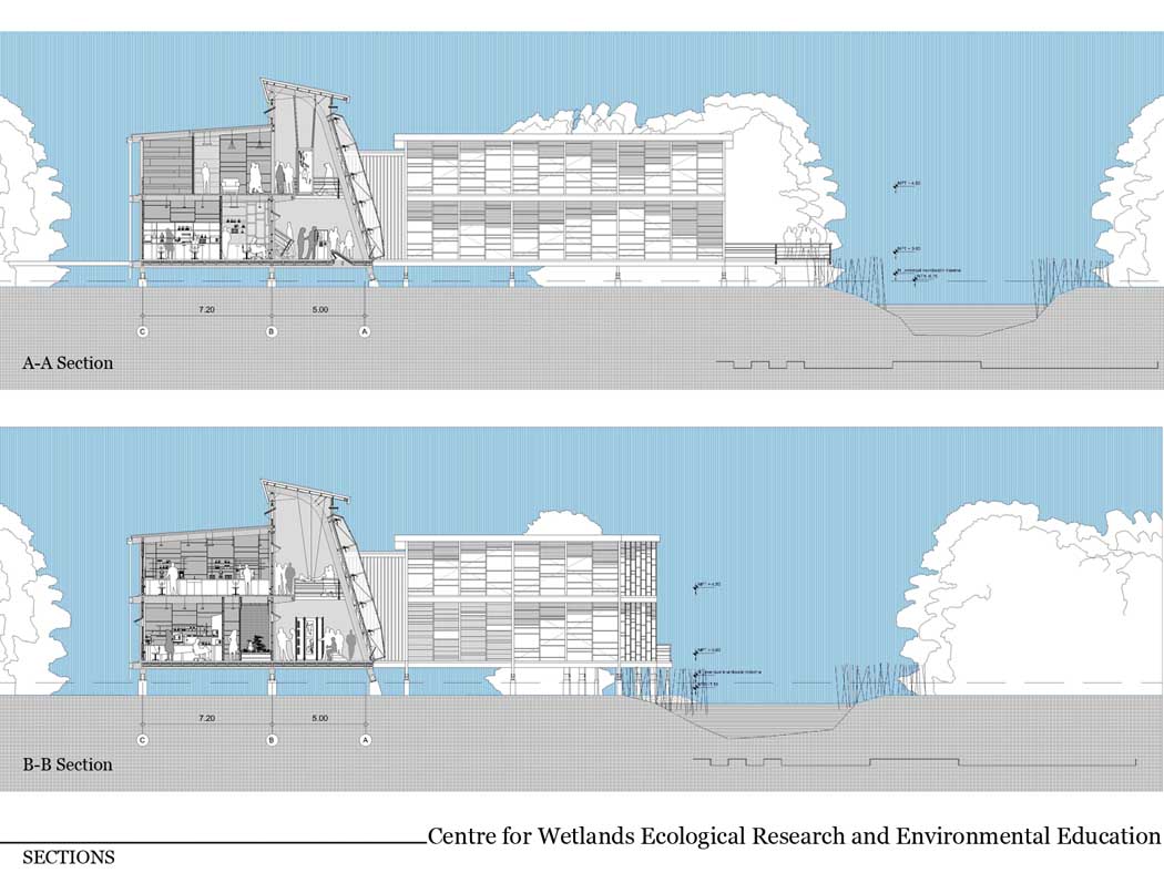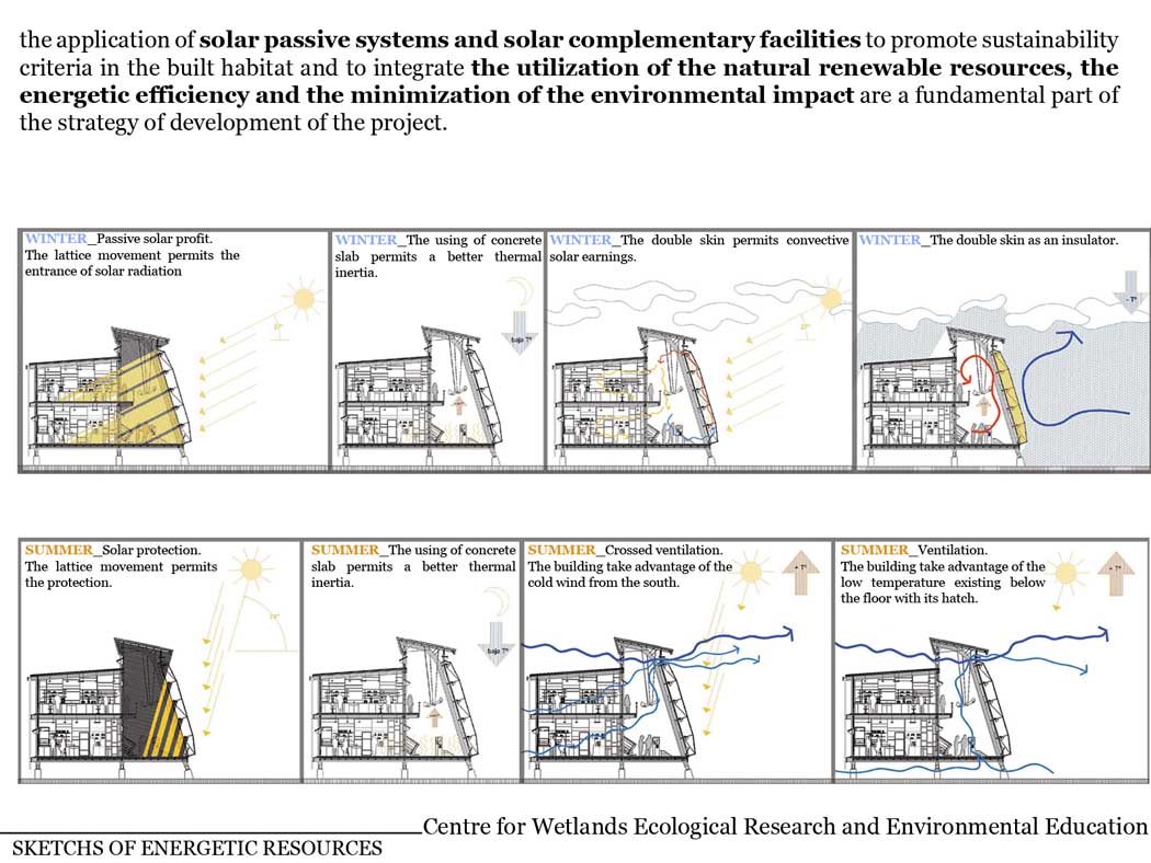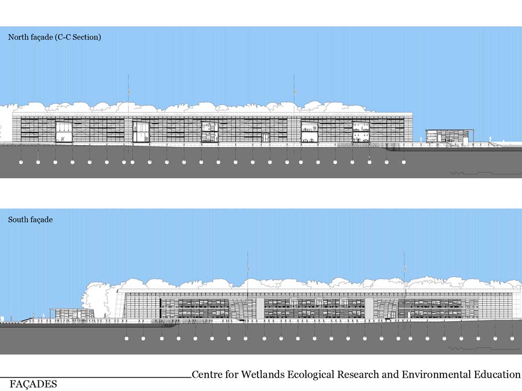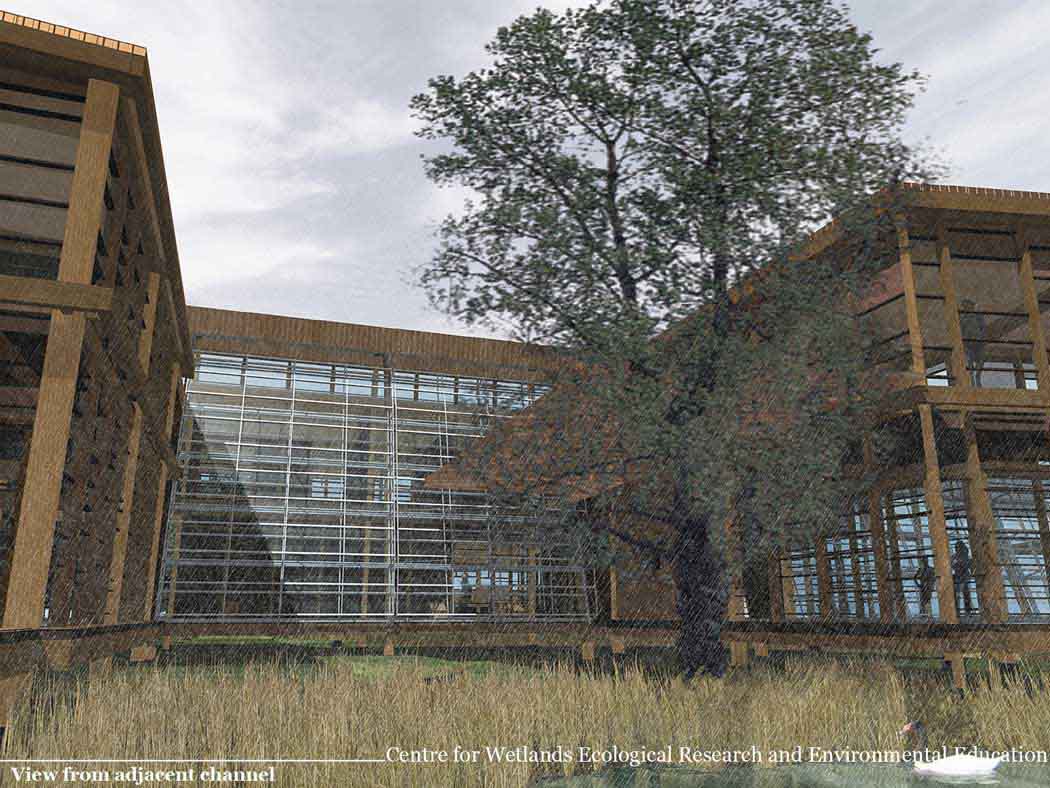 Centre for Wetlands Ecological Research and Environmental Education Part 2 Project 2006 Drago Vodanovic U University of Chile | Chile The project was motivated by the incipient national interest to protect and to investigate natural significant areas, as the wetlands are.Its architectural structure -conceptual, spatial, constructive- implies an important valuation and adjustment to its environment, looking for specific answers for the complex relation nature-edification.The project’s path shape recognizes the different natural strata by it pass and generate the main connector space; the glazed gallery which permits the relation between programmes, users and mainly between architecture and nature. This gallery makes possible the use of natural renewable resources, creating a symbiotic relation between the building and its environment. The project stands out for several reasons; the first one is that it responds to a theme with international importance as the ecological disaster of the Chilean wetlands. That’s why a building of such characteristics supplies needs that the student discovered and designed in a remarkable visionary way.The proposal has a very interesting way to be placed in the landscape, respecting its particular characteristics as well as taking advantage of its potential; which not only stands out in the spatial-form concept, but also in the intelligent development of the constructive design, going further by creating echo-conscious technological systems.