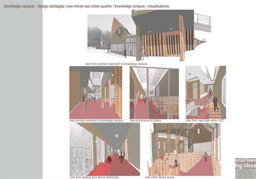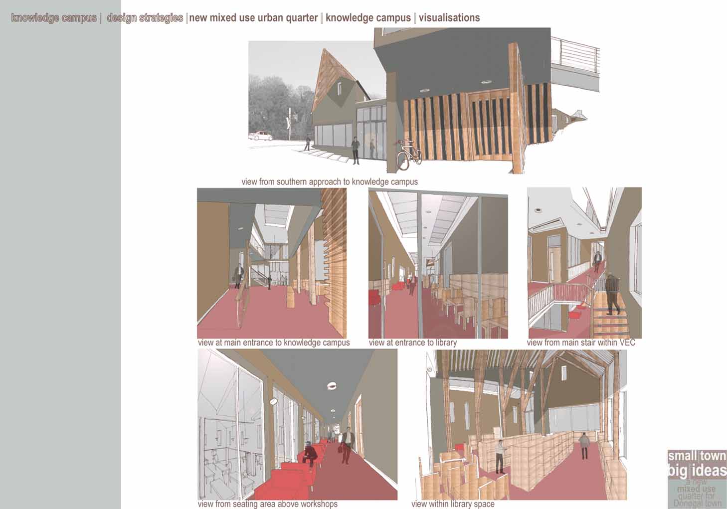 The Knowledge campus - External and internal visualisations showing proposed material and tonal qualities of proposal