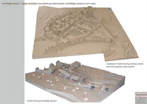 Block plan of new urban quarter with Knowledge campus showing within context of existing town centre