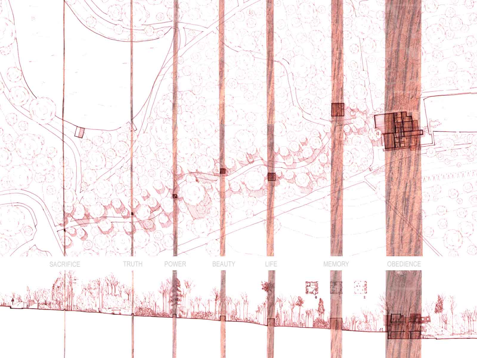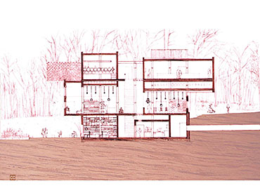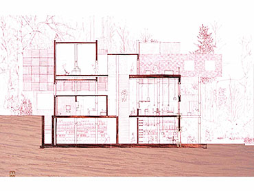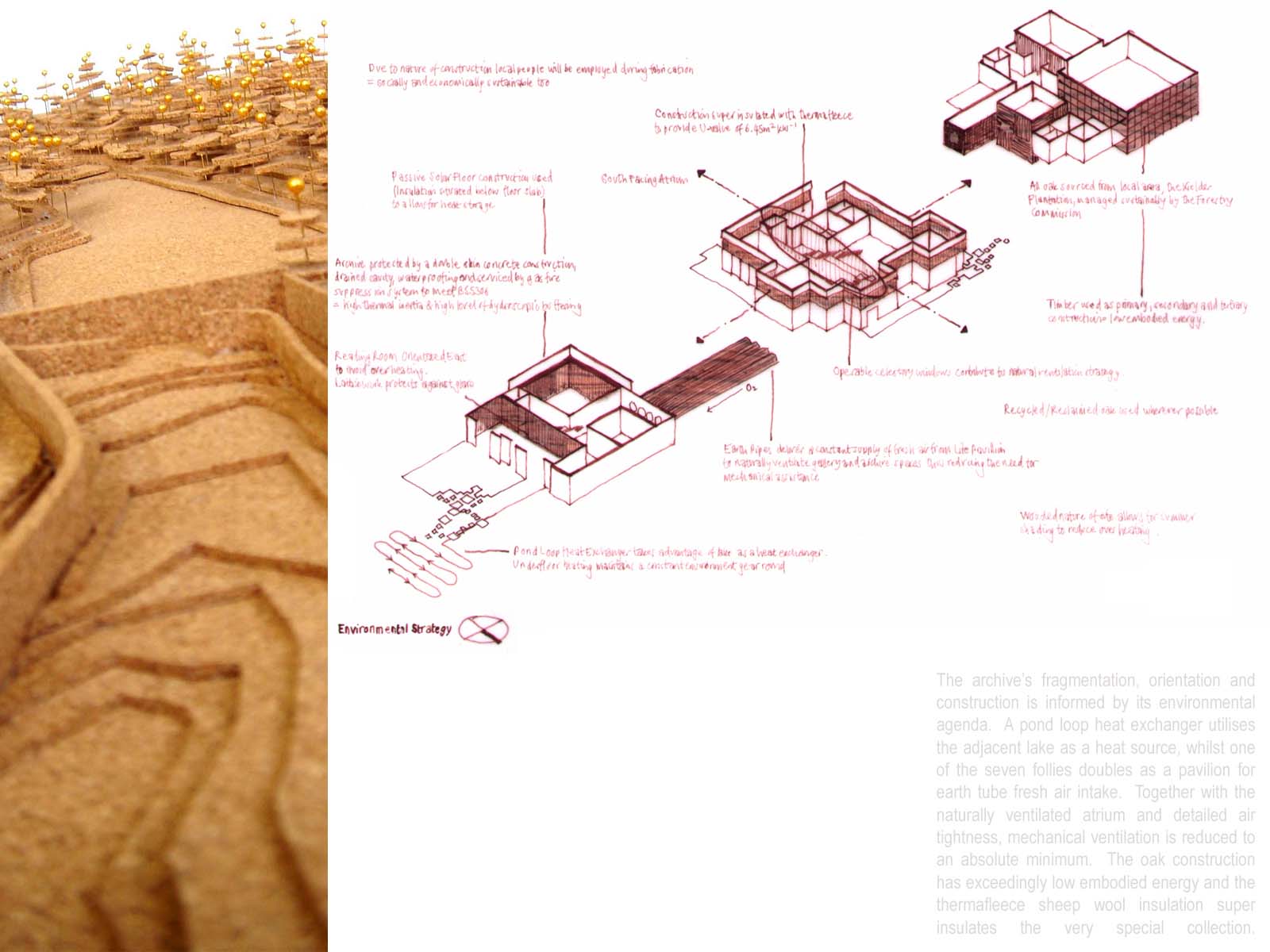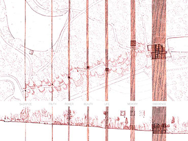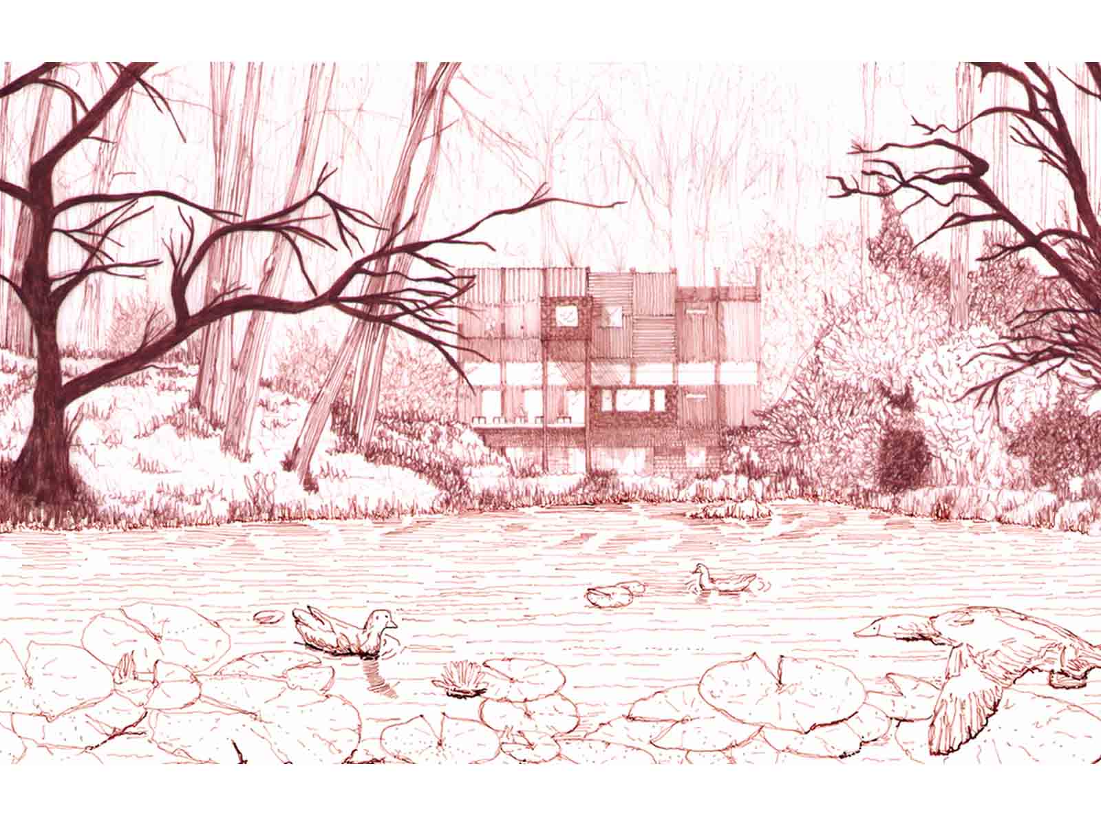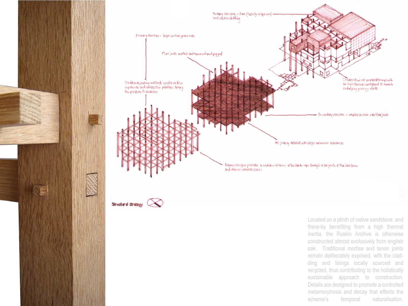 The Seven Follies of Wallington - Ruskin Archive Part 1 Project 2007 Elizabeth Makinson Newcastle University | UK The Seven Follies of Wallington act as transitional stepping-stones to the Wallington landscape and to the philosophies of John Ruskin; they portray the evolution of the cube as it fragments, mimicking the neglect of its landscape. As the follies punctuate the landscape they gradually unravel, exposing more of their deepening textures and complexities. The material palette chosen reveals through weathering the temporality of nature. The detailing, orientation and choice of cladding is designed to finally disintegrate into a built ruin, the stone clad archive monumentalised, by a developing patina of neglect… The project sought to explore the powerful themes of Metaphor and Material in John Ruskin’s work and thought: it proposed an archive to house the vast collection of Ruskin’s drawings, paintings, daguerrotypes and library. The evocative setting was Wallington House in the Northumberland countryside - a place with strong Ruskinian associations. This scheme resonantly imbricated readings of Ruskin and the English landscape, adopting for example, the themes of fragment and folly (reflecting Ruskin’s fragmentary vision) to realise an eroded lakeside cubic pavilion, sustainably crafted in English oak, and finely represented with a concern for freehand draughtsmanship analogous to Ruskin’s own.