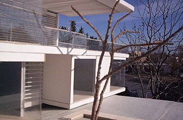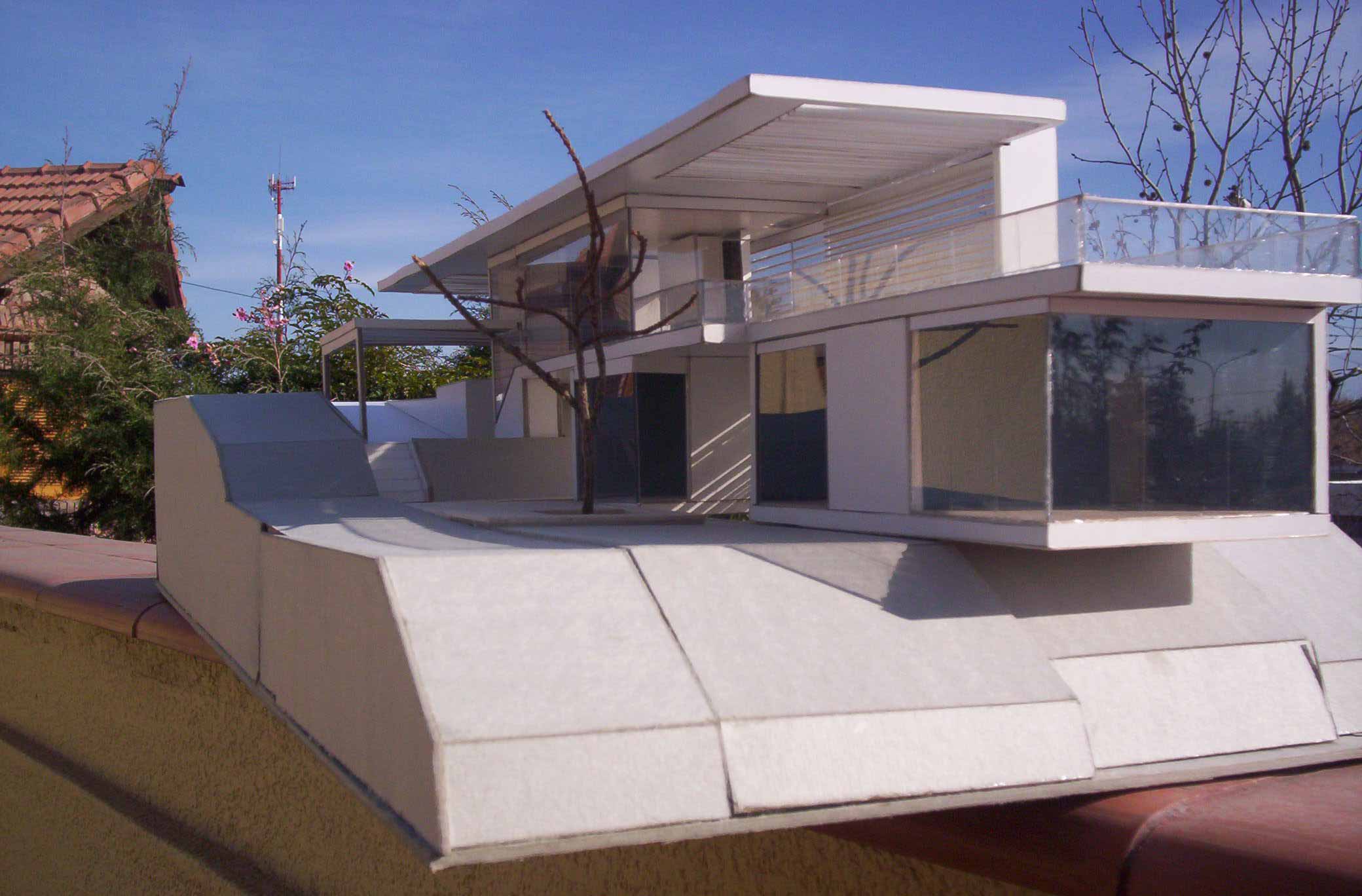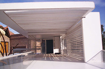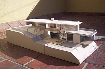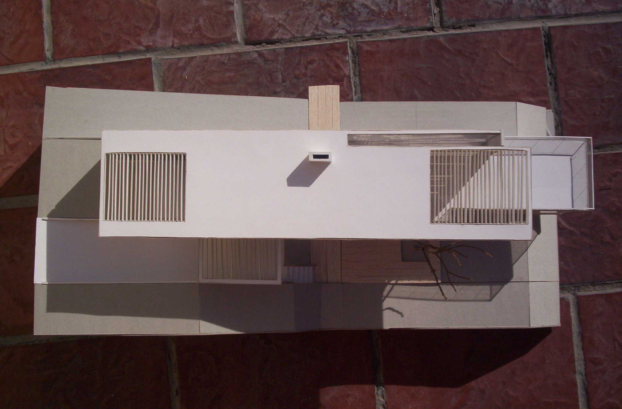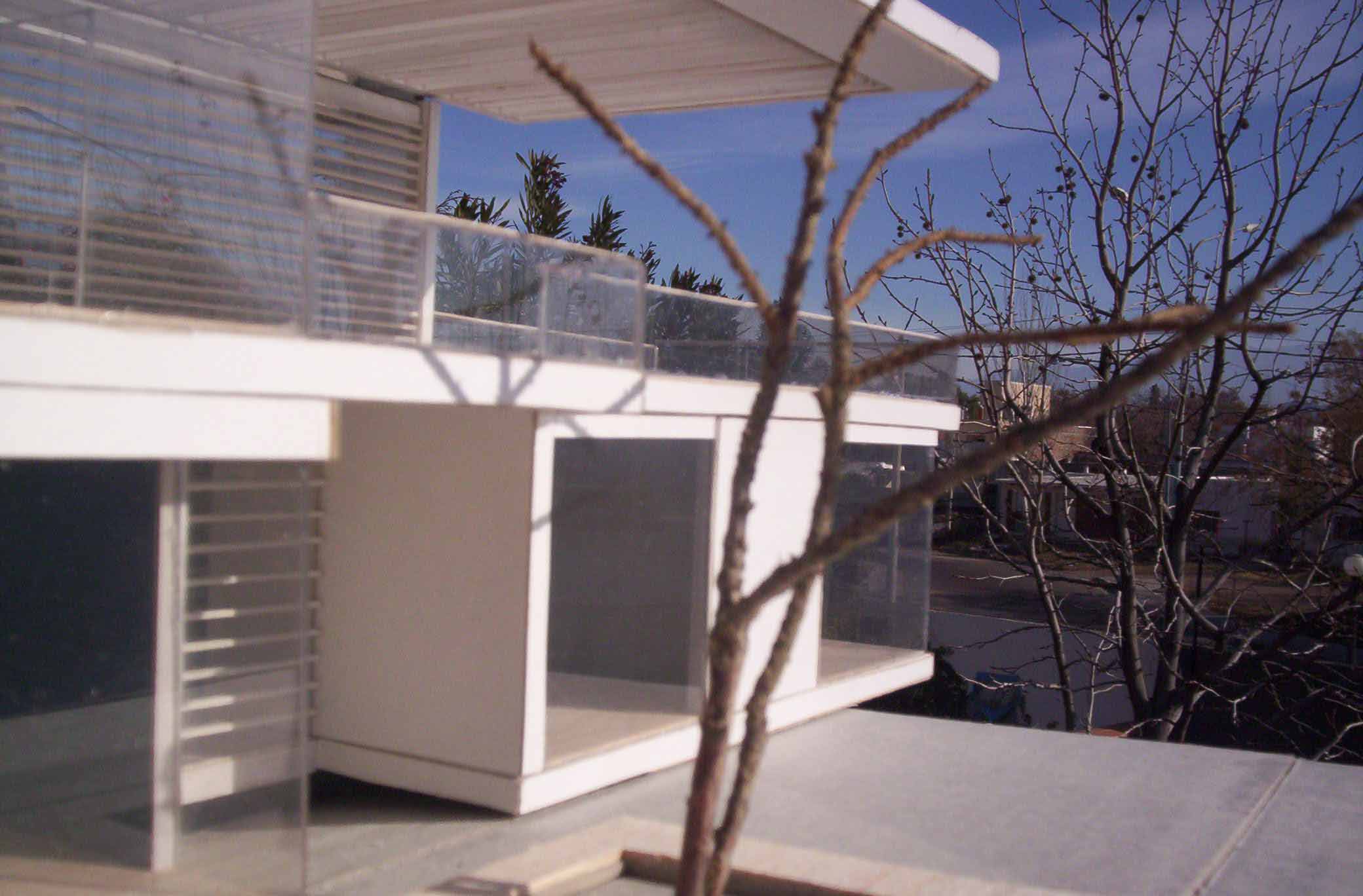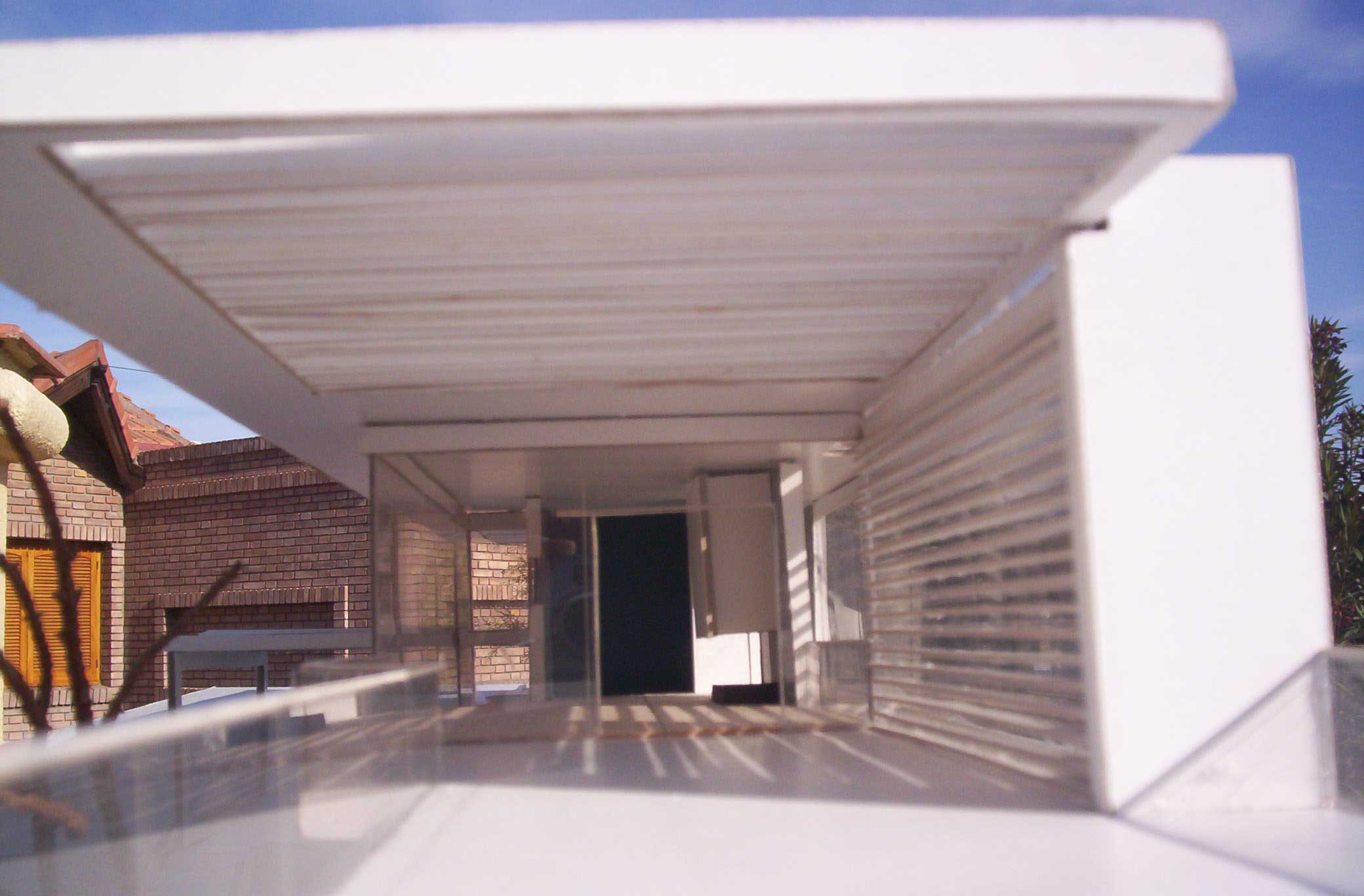 HORIZONTALY SHAPED HOUSE Part 1 Project 2007 María Cecilia Coll University of Mendoza | Argentina The house emerges from the earth and with incredible horizontal strenght approaches the water,creating a shape that outstands and at the same time mingles with its surroundings.Situated in a sloped site a white horizontal shape rests lightly on the terrain. The reinforced concrete generates a plain roofing that developes into a ‘pergolla’ (open gallery), wich reinforces the horizontal idea of the house, also enhaced by ‘bris soleils’ that produce lights and shadows in the interior spaces. The house's internal distribution is in direct relation with its shape, creating a lineal tour that ends in the water. Troughout the year the students develope two houses: one, horizontally shaped in a sloped site, and an other, completelly opposite to the previous, vertically shaped. Both of them have very specific programs and determined goals to achieve. This forces the students to use all their creativity and all the resources available to solve the problems that they face concerning function, space, site relation, materials and structure. The product of this creative process is marvelous, producing excellent architectural designs, such as the ones chosen from this student.