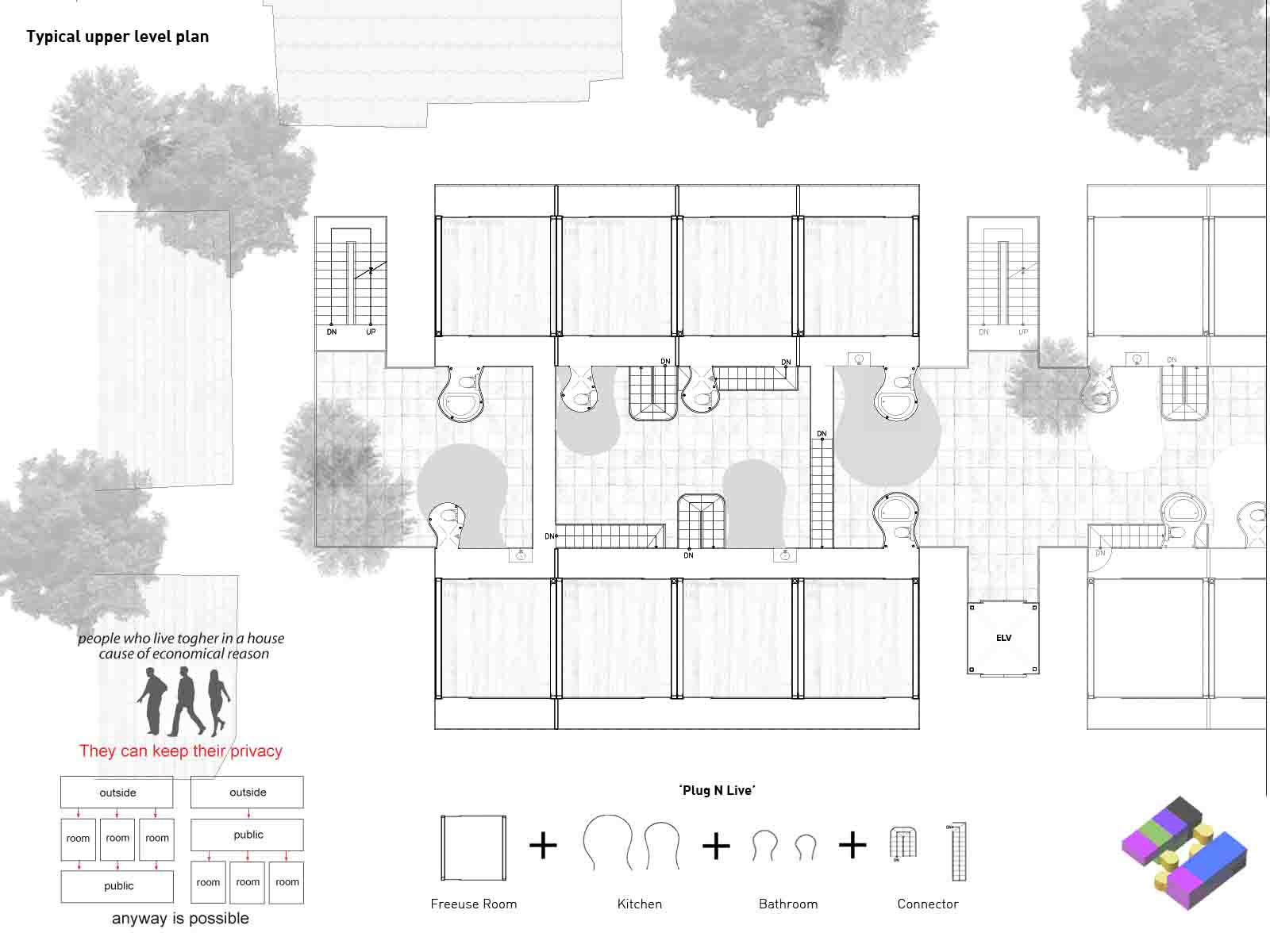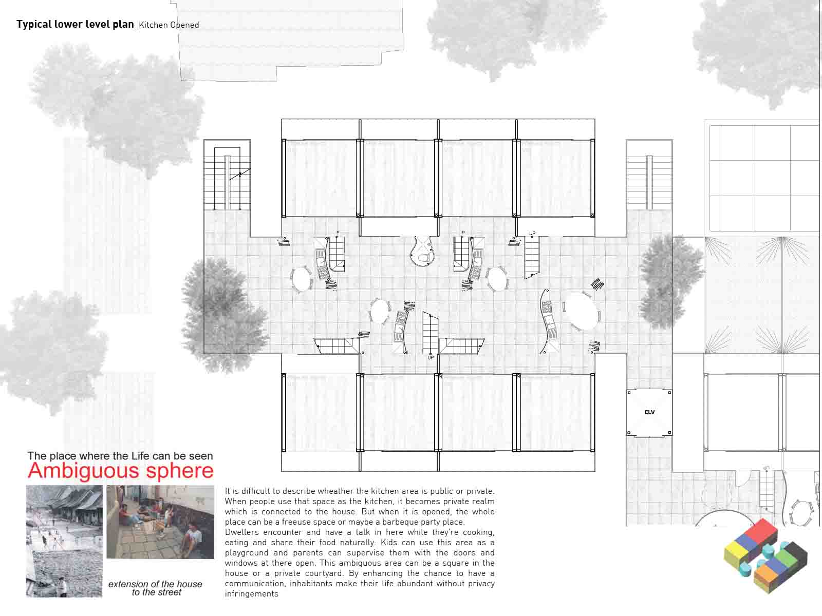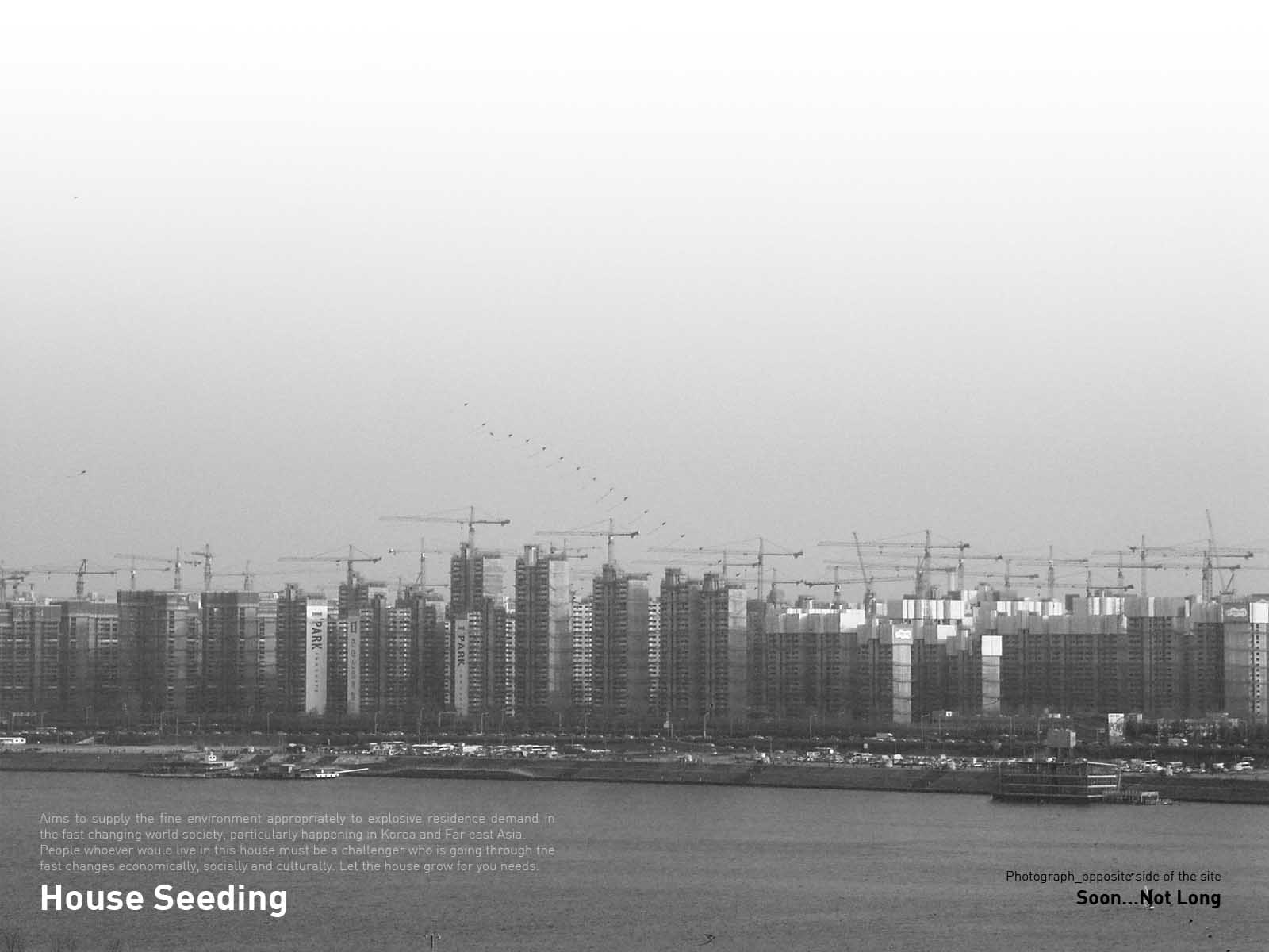 House Seeding Part 1 Project 2007 Youngjoon Chung Korea National University of Arts | South Korea Is an apartment block the only solution to mass housing in Asia? The project starts out with manifesting Seoul through the mutation of its urban conditions. The '5D Vertex City' experiments with possible relationships between public-ness and private-ness. Linking these considerations with the actual project new boundaries are defined in mass housing. The design not only experiments with the inner boundaries but is also concerning the relation with existing houses in the context, overcoming the erasure of the existing fabric of the city by ruthless insertion of whole new gated apartment complexes into the city. Questioning the Korean obsession for the ‘Apartment’ as the ultimate typology for living, Young Joon Chung discovered during the studio process, with the tasks APT-Makeover, Seoul Manifesto, and Seoul Future Housing, the essential flaws with this typology. Reintroducing lost values as community, adaptability, complexity, sustainable urbanism, and human scale, he succeeded in a wonderful way to understand and to utilize fundamental sociological and architectural principles for his design, which expose formal decisions as a secondary question in the context of housing.