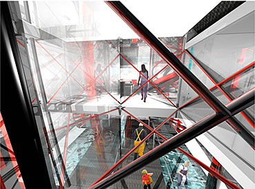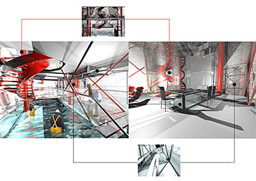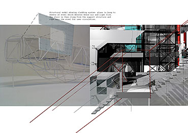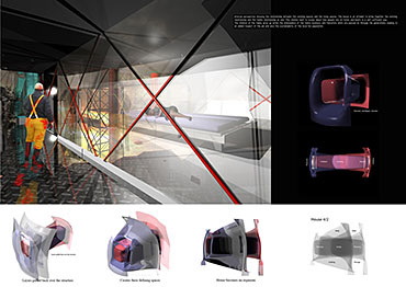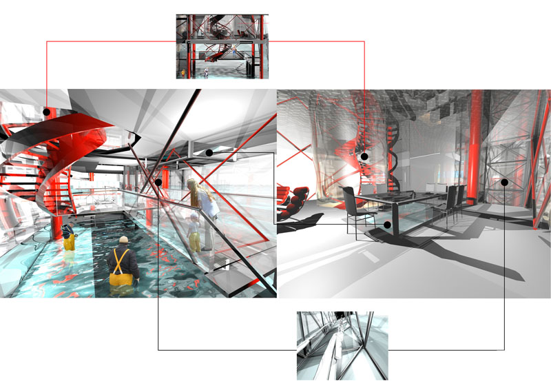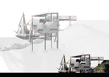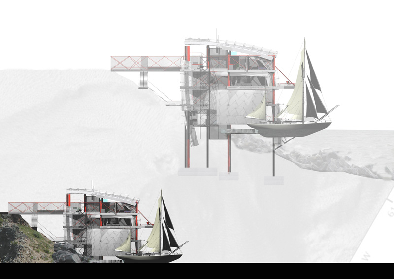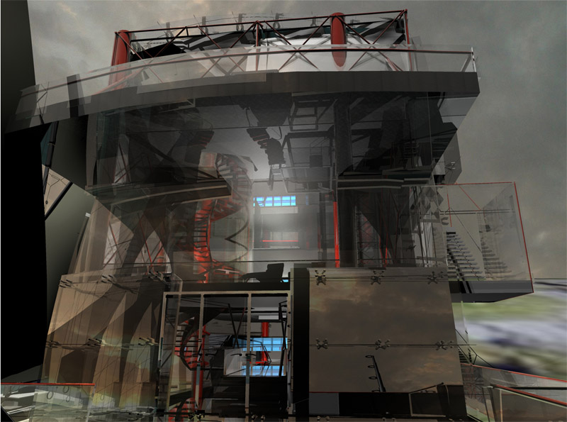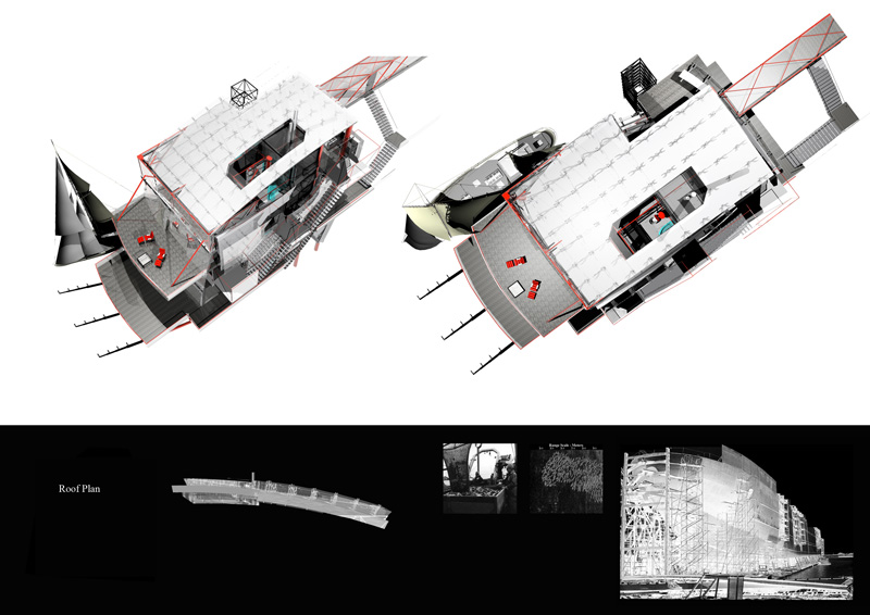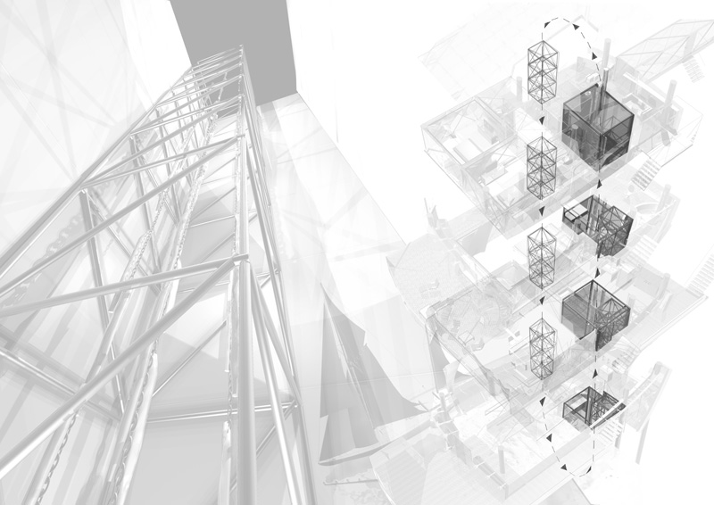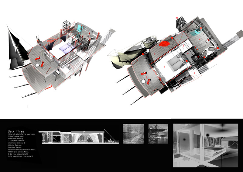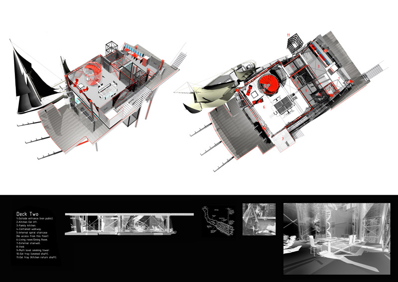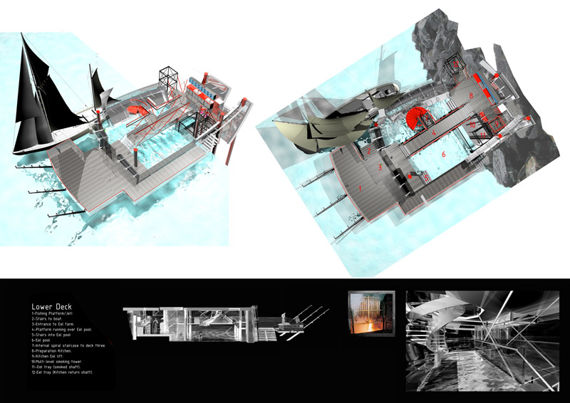 Jonathan constructed the Eel House brief for this six week long project to explore his interest in industrial form, integrated living and the creation of space that defies categorisation. The house plays:
