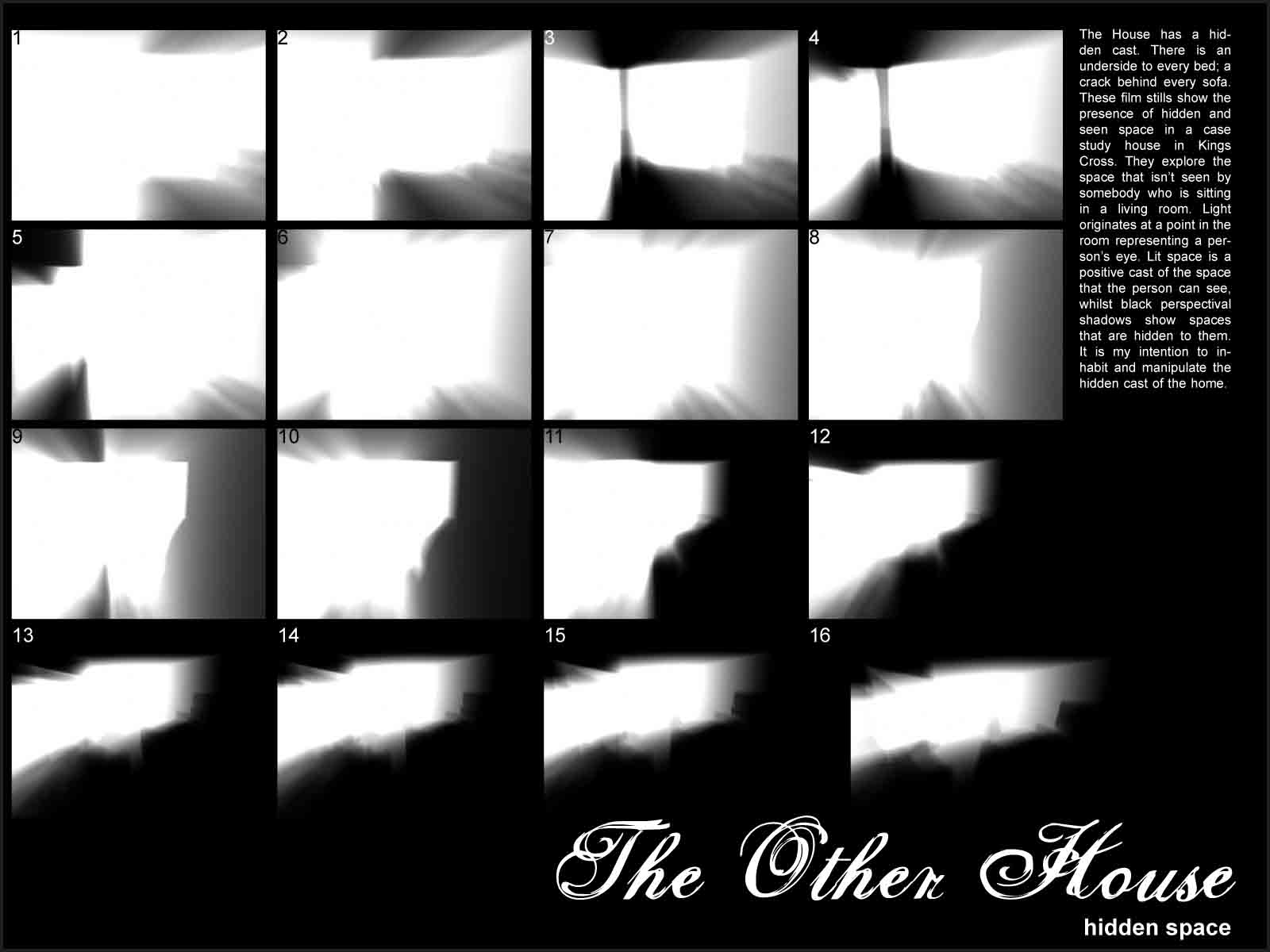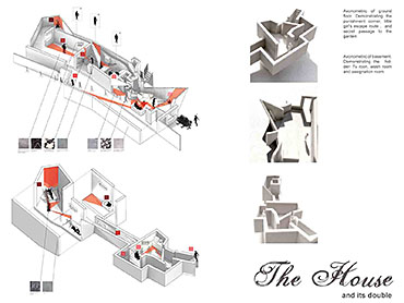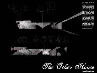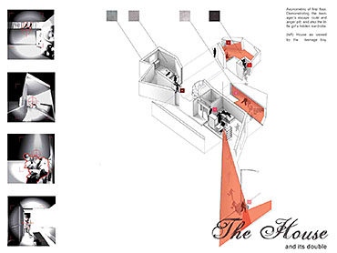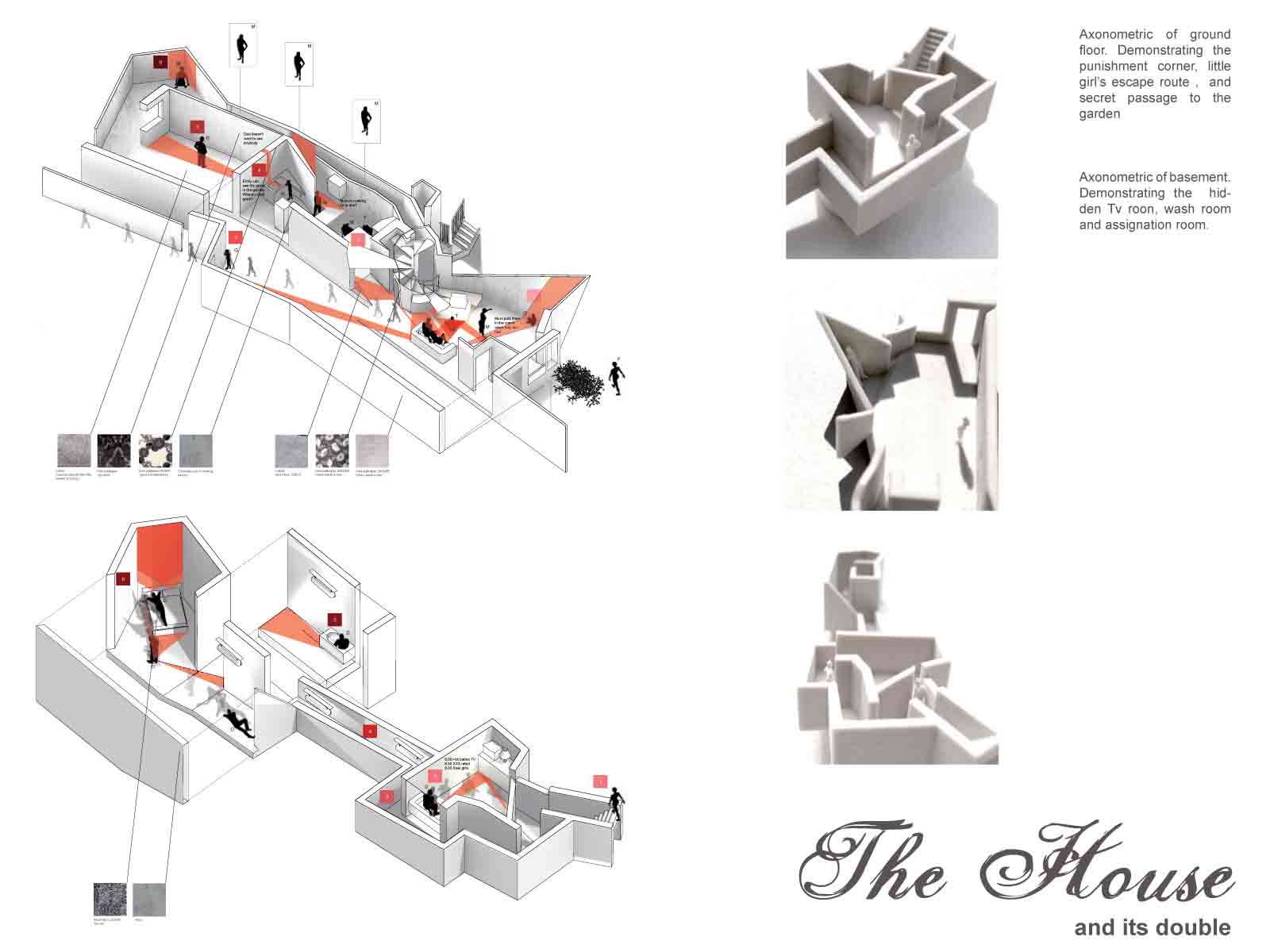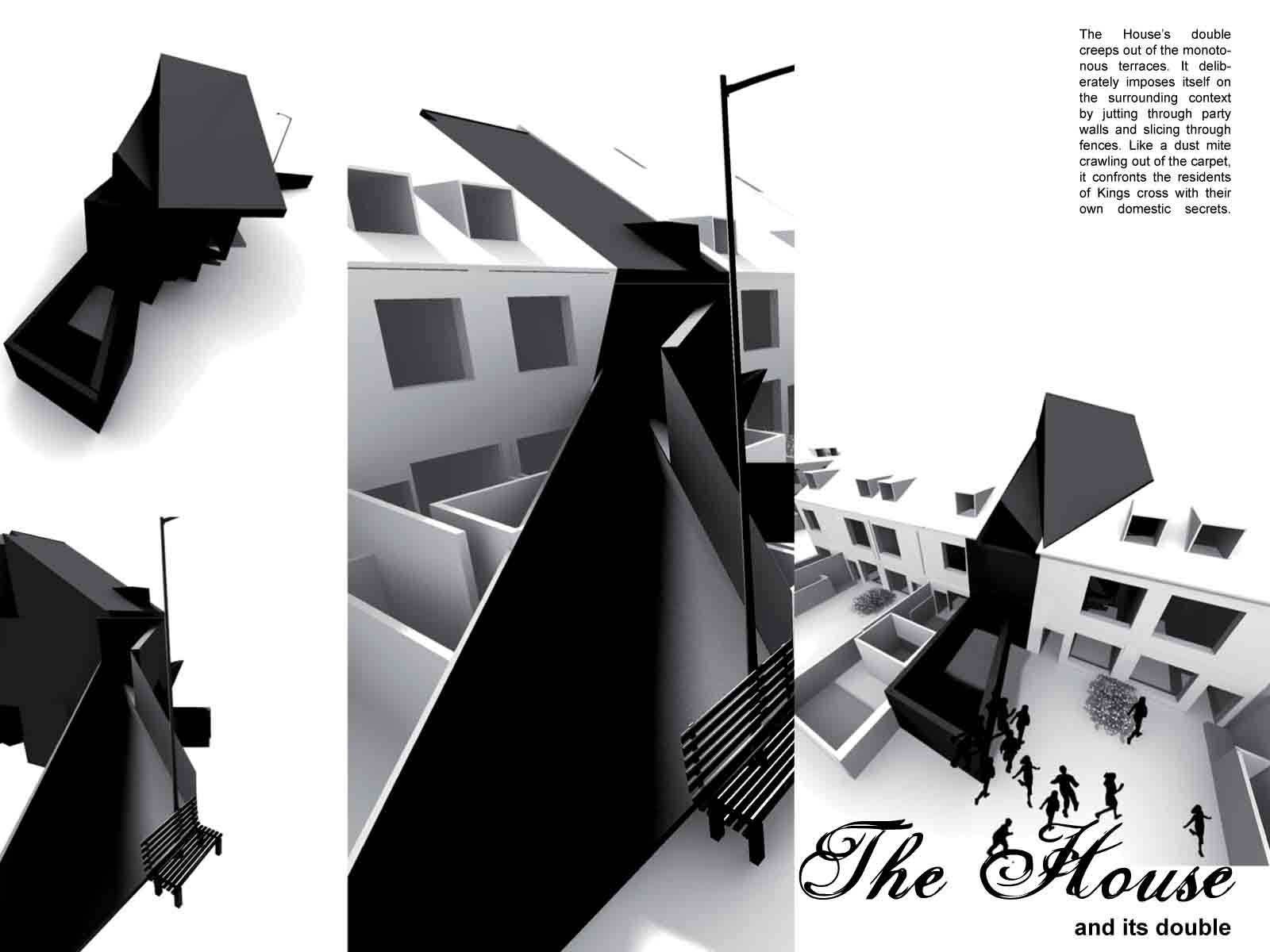 The House and its Double Part 1 Project 2007 Rachel Harding University of Cambridge | UK What would happen if we could slice through the psychological fabric of the domestic as easily as we can peer under the bed? This design proposal for the house and its double critiques both the current dominant model of terraced housing in Kings Cross, London, and provides an alternative house mode which highlights the dominant socio-cultural rituals of everyday life and the more sinister social dimensions to domestic living. The house's double responds to existing family power structures and living patterns, choreographing events between hidden and exposed spaces, distorting the hierarchies, values and architectures of all family members. The studio brief explored what it means to create urban living units within London's dense mesh of networks and forces, and what the core unit of contemporary British domestic life might be. The strength of Rachel’s scheme lies in its conceptual rigour when dealing with the complex power relationships in a singular family unit. The play and misuse of relationships exploits and subverts the internal geography of domestic rituals, creating a noir milieu that, to quote one of the external examiners, "makes the hairs rise on the back of the neck."