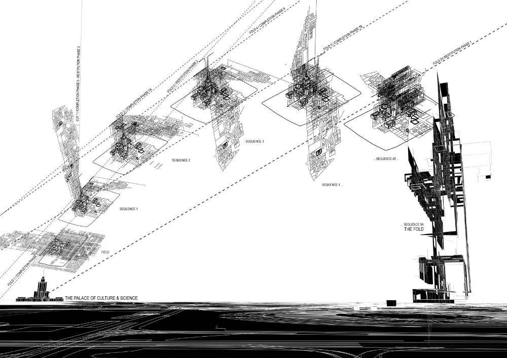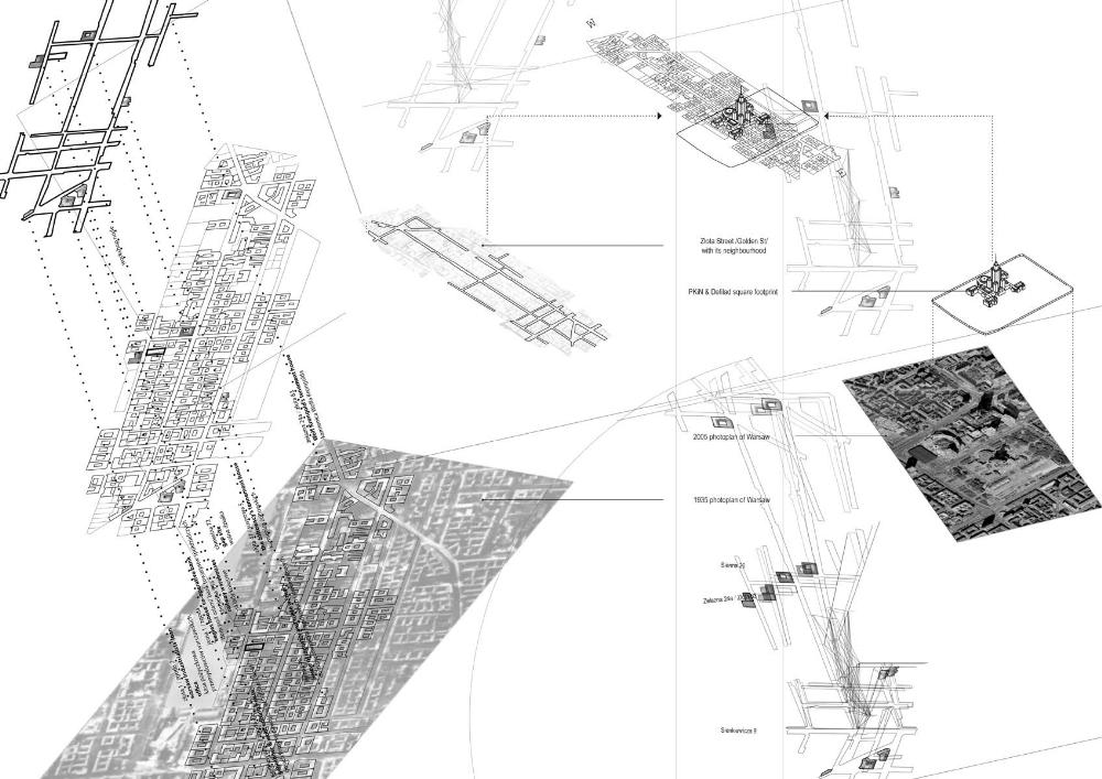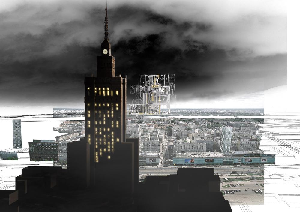 This project is concerned with issues of spatial power, urban memory and living in the post-socialist situation of contemporary Warsaw. It addresses the most monumental and problematic architectural presence in the city, the Palace of Culture and Science – a Soviet-style skyscraper built on the initiative of Josef Stalin in the early 1950s. The location of the Palace demanded extensive demolition of pre-existing urban tissue before construction could begin. In a city that was almost completely razed during World War II the sacrifice of a major tract of housing that had actually survived was a highly aggressive and ideological gesture.