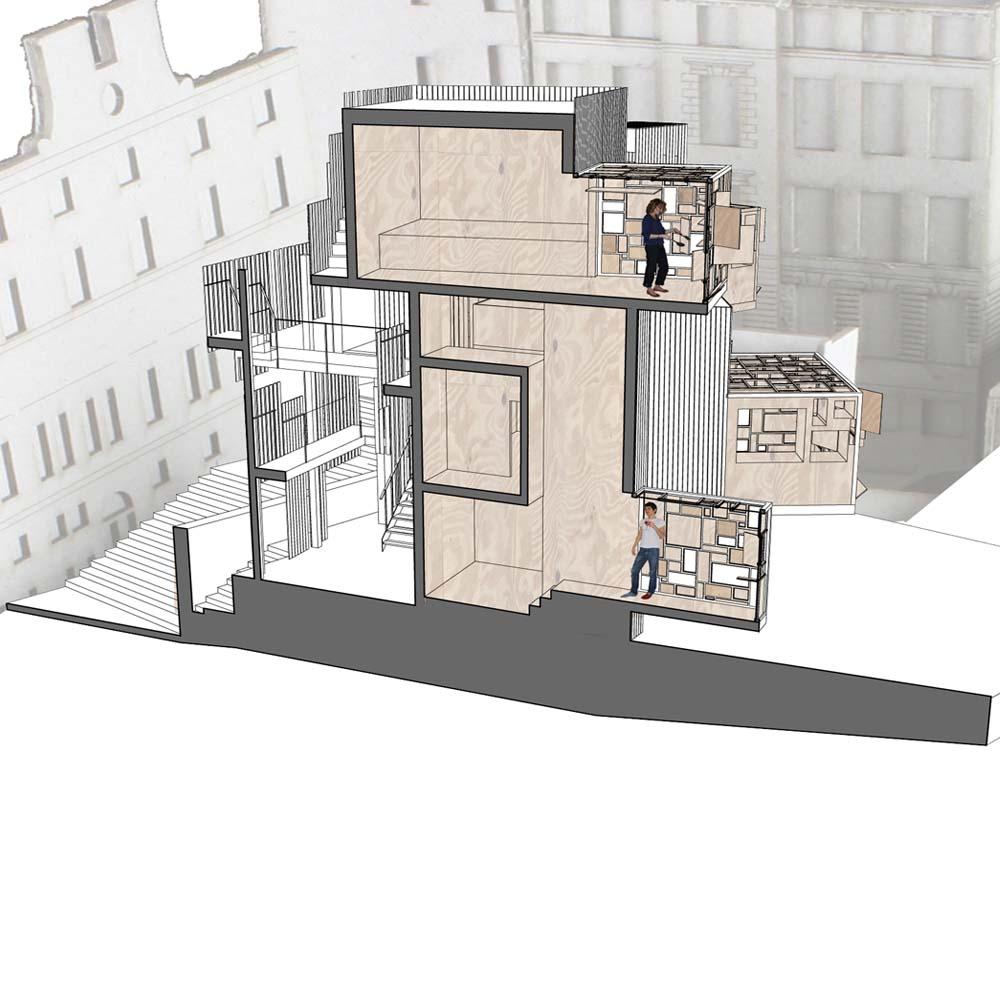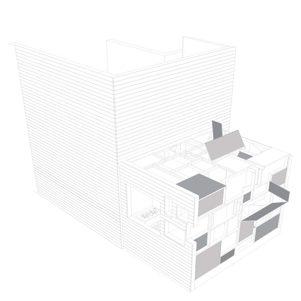 The Edinburgh Kitchen Part 1 Project 2009 Jack Sharp University of Edinburgh Edinburgh | UK This project attempted to address many of the current issues associated with social housing. It resulted in the development of a small apartment block, consisting of 5 studio flats that would provide affordable city centre accommodation for single occupancy. This objective was achieved by regenerating an unused site within central Edinburgh. This allowed affordable housing to weave amongst a gentrified area of the city, aiming to stop the ostracizing of affordable housing. I believe this to be highly important in providing diversity within a community. I also strongly believe in the benefits of regeneration, not only because it allows an interesting interaction with existing buildings, but it is also critical in our ambitions to be sustainable and reduce our environmental impact. The project also focused on the interaction between the inhabitants and their surrounding environment. This was achieved through placing the kitchen at the forefront of the design, as part of the boundary between public and private space, making the performance of the kitchen part of the façade. I believe this innovation would provide an architectural enhancement to the site while increasing interaction amongst the community. The kitchen has become a site of intersection between bespoke design and the pragmatics of everyday use. Kitchen design currently hovers somewhere between luxury product design, service infrastructure solution, and dream, yet is a significant site of cultural and technological negotiation- from urban food politics to social-political home economics, to domestic ritual and value- a site of conspicuous and inconspicuous consumption.The studio brief (for 6 housing units in Edinburgh’s Old Town) was to explore this rich domain, to contextualise a history of kitchens and kitchen design, in order to propose future spatial translations of ‘kitchen’- as an idea, as a material manifestation, and as a catalyst for the arrangement of wider domestic and urban spatial sequences. Jack’s response included investigations into the ‘performing kitchen’, the knowing choreography of an individual cooking and being watched. Influenced by de Koninck’s 1930 CUBEX kitchen, his design approach was to intensify the cooking-eating parts of the proposed apartments as an intricate performing ‘hub’/ ‘heart’ counterpoised against the remaining more distilled spaces. The grouping of the apartments, with service access consolidated to the north, situates the ‘kitchen’ elements as animators of the building presented to the route through the close behind the Royal Mile.Suzanne Ewing12.09.09 Tutor(s) Ms Suzanne Ewing
