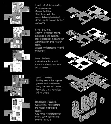 Boxes Part 2 Project 2009 Constanza Rey University of Palermo Buenos Aires | Argentina It is inevitable to react when you face the porosity and the apparent diversity of the city of Buenos Aires. Nowadays the urban reality is defined by a continuous transmission and intersection between images, experiences, codes and people behavior. Private breaks into public atmosphere and this in its return, redefines and floods the private sphere. The strategy it self is to try to be able to take control of the urban panorama and to shape it up or to sculpt it. When we are about to start a project, many are the questions that we must consider when we analyze the city. The analysis of a specific area offers us the tools that we need to create; depends on us to discover the weaknesses, strengths, the social and formal features that open us the doors to a world of possibilities that relate to the creation process. This study, that includes mainly the senses, allows us to reveal the qualities that make clear the possible shape and substance of the building, contemplating the nature of a particular area of the metropolis that is going to embrace it. The project aims to merge into the existing urban aesthetics without causing a huge impact, effect that may produce some sort of damage. Equipping the area with a space that is woven into the activities conducted therein, composing an unstructured environment at first sight, but aware of its own insertion, which redefines with harmony the environment that surrounds the project. Maintaining the same scale it intends to be part of the atmosphere, with no other ambition than to establish a harmonious and reciprocal relationship with it. Taking segmentation as a permanent state, and trying not to fall into some sort of imperfect modernization, it is based on a structural calculation of the city and its own porosity, and attempts to sketch a fragment of the mentioned before city. …The notion of working at an intimate scale has been the main preoccupation of this project.Interested in basic daily rituals,the use of domestic enviroment juxtaposed with more generic building elements.In projects like this proposal,architecture is understood as a series of intimate engagements,as something experienced haptically,by operating or moving through it rather than via an intelectuall or visual conceptualization.Boxes ,ramps,skylights,old party walls,fragments,just pieces,parts of something bigger,something we can’t see….This project is also about identity,searching identity of the fragmented city,the condition of being the same substance,composition,nature,properties or particular qualities under consideration… Tutor(s) Alberto Rebecchi