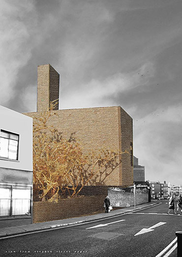 To retain the old theatre entrance on Longford Street and to stitch it back into the fabric of both the place and the city. To fold the existing boundary wall on Stephen Street back into the site, allowing the fold to act as both an entrance and more importantly to address the Georgian Townhouse opposite. This move provides new breathing space to both the house and the street, and also creates new public ground in the city, partly sheltered by the overhanging studios and the foliage of the red birch trees contained within the sunken garden.