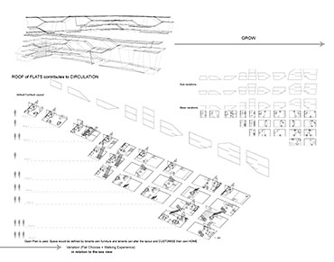This project questions about the repetitive approach of Modernist mass produced housing typology, in which every flat or floor has the same layout with the same entering experience i.e. the lift core, striving for pure production efficiency.