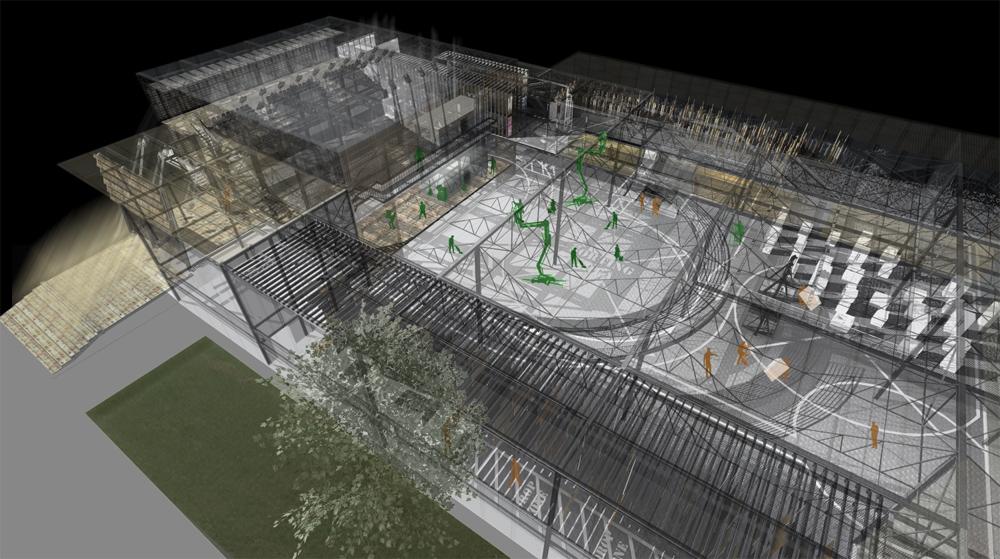 The vernacular runs right into the theatre, which, in-keeping with the language of the rest of the building, adapts to the size of the performance, or disappears altogether when not in use.