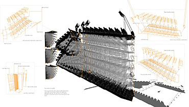 It has been a pleasure working with Andrew, as he has sought out ideas and concepts to clarify his understanding of where his work is coming from and its destination. So it is typical that Cedric Price and Architecten 2012 have simultaneously informed his thinking and designing. Taking ideas from theory into practice through making at one to one has helped with technical understanding as well as embedding a feeling for the tactile qualities inherent in this proposal. The construction of a working chicken coop, for use by local food gardeners, early in the design process, set in place many ideas taken forward both at the scale of material resolution and in the design process. This coop, constructed following “harvest mapping” principals and incorporating sophisticated micro electronic anti fox sonic devices, became a touchstone for the final building that evolved and is presented here.