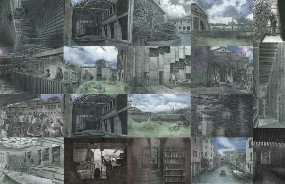 In Venice a richness can be found in the seemingly mundane. Layers of decay, peeling renders, bricks crumbling with the tides, and repairs reusing ancient stones. Seeking out and studying these exposes a richness to be captured in drawings. The act of discovering is as important as the final drawings. The experience forms an understanding of the city, studying these elements assembles my own image; an instrument that constantly interrogates any decisions.