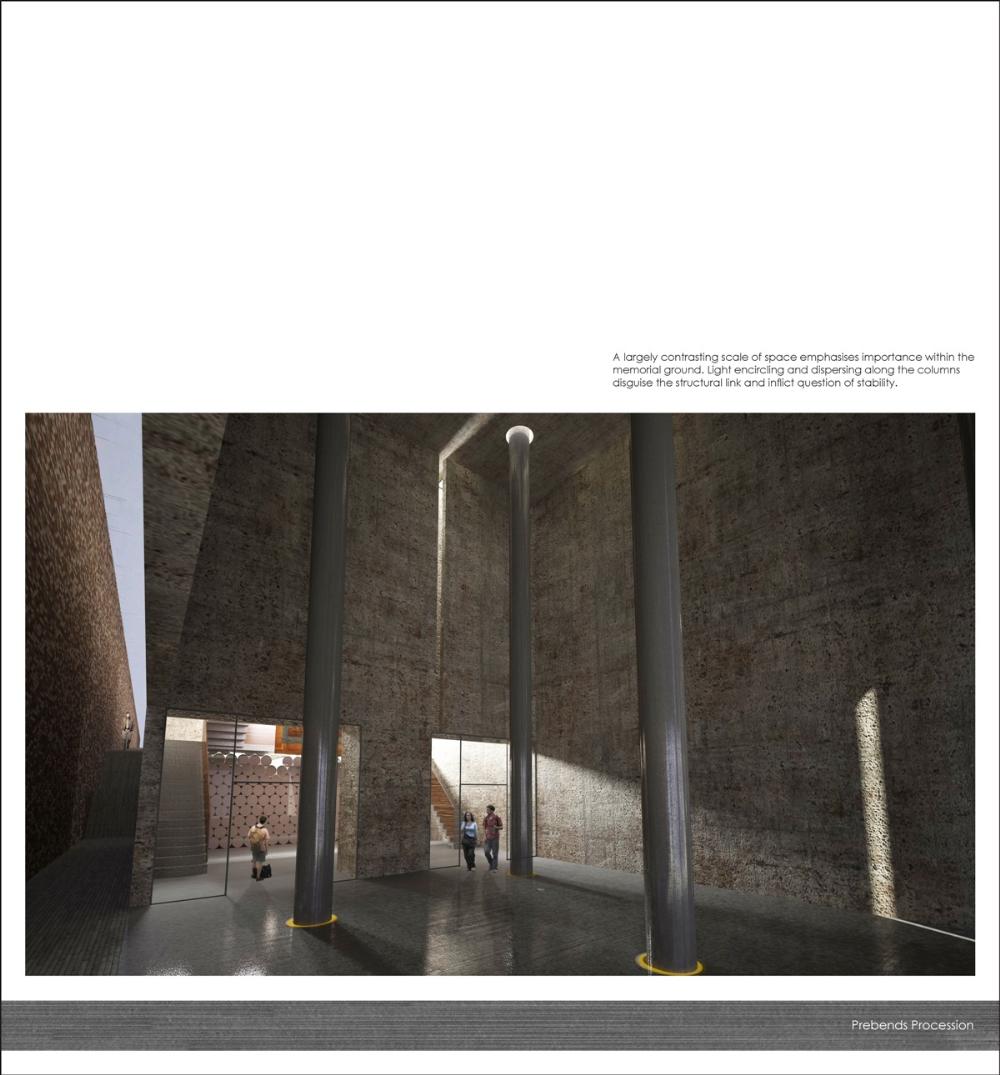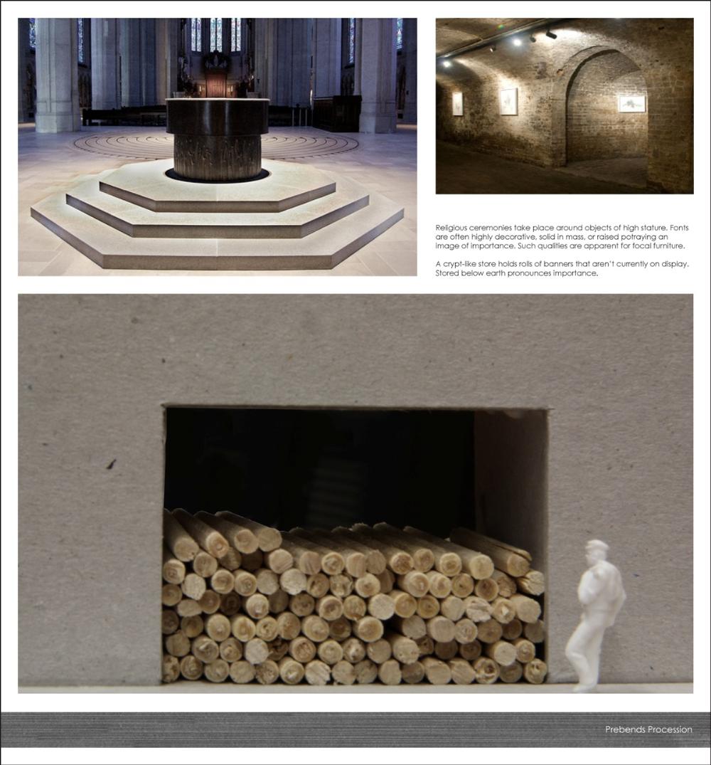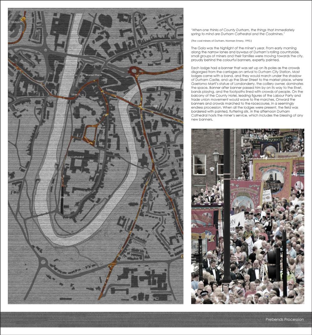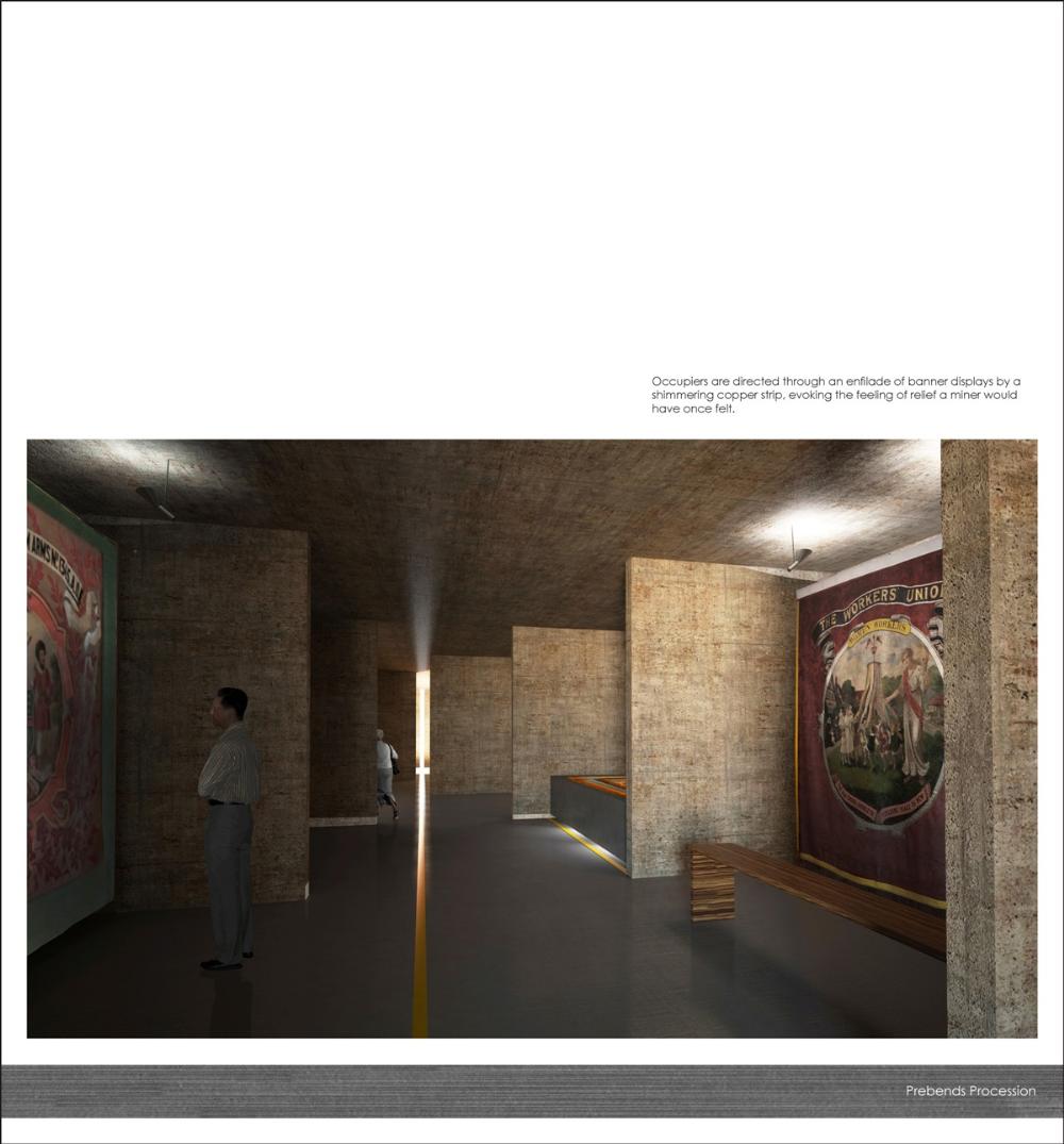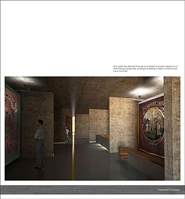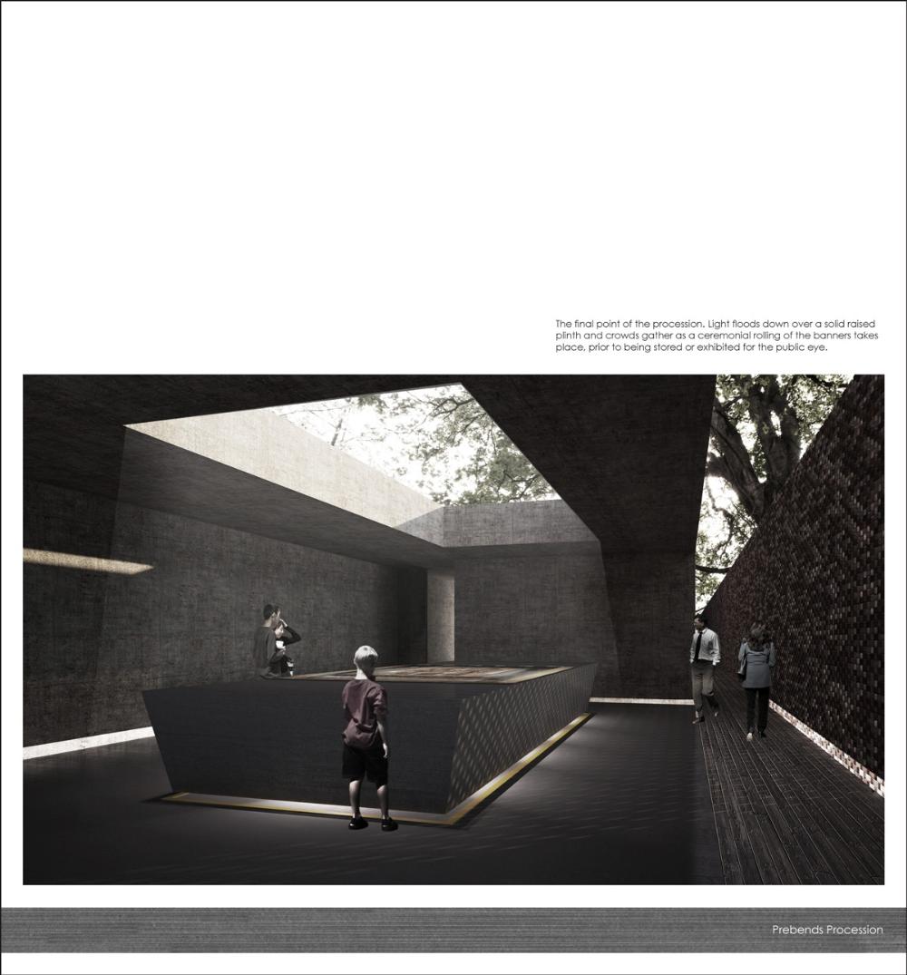 The proposal involves an extension to the procession. A place for a ceremonial event where the delicate, loved pieces of art are rolled prior to being stored or exhibited for the public eye. There will be provisions to socialise and converse, to research and admire, and to remember and reminisce. The proposal will also cater for the conservation of banners that date back to 1892.